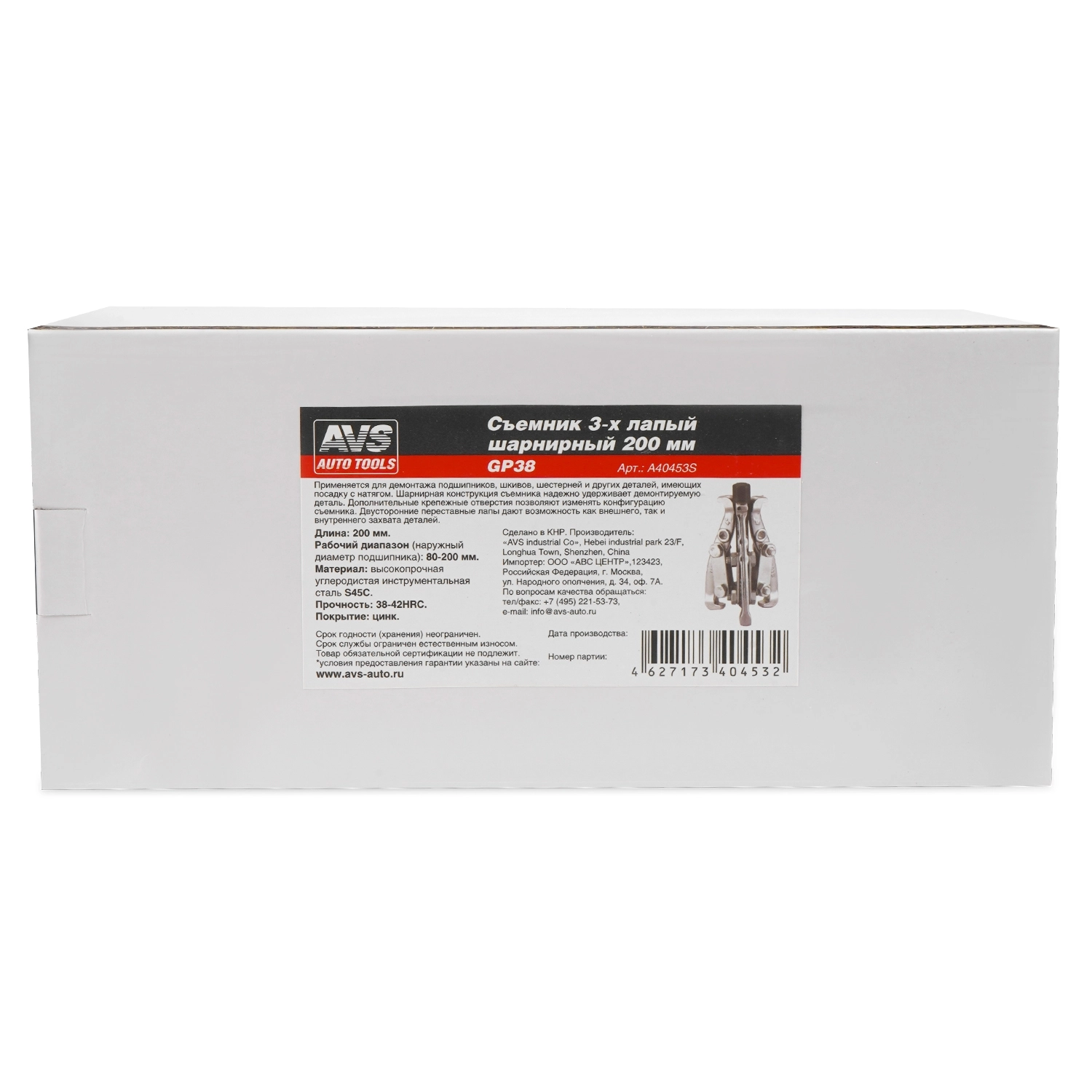 Съемник шарнирный 3-х лапый AVS GP38 (200 мм) - рабочий диапазон 80-200 мм, материал сталь (S45C), прочность 38-42HRC, покрытие цинк
