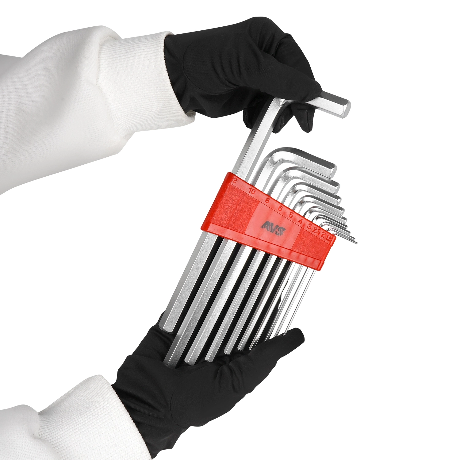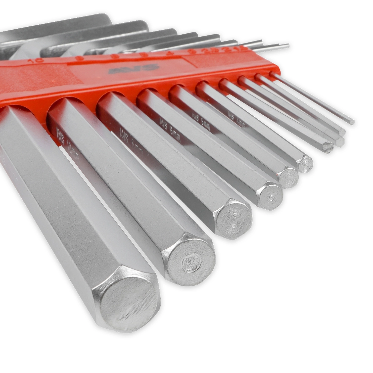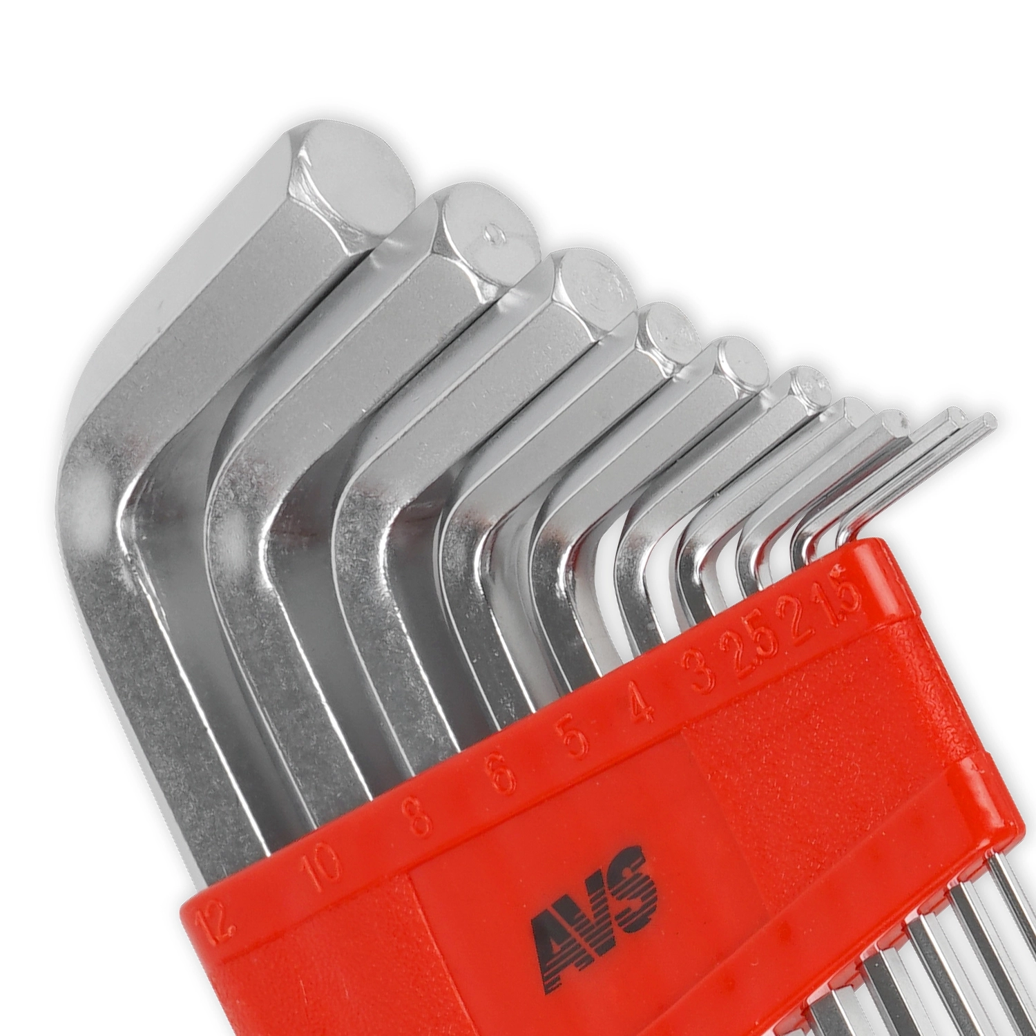 Набор ключей торцевых шестигранных AVS HKS-10L (1,5-12мм) удлиненных 10 предметов - материал хромованадиевая сталь (CrV), покрытие матовое, твердость 48-52HRC