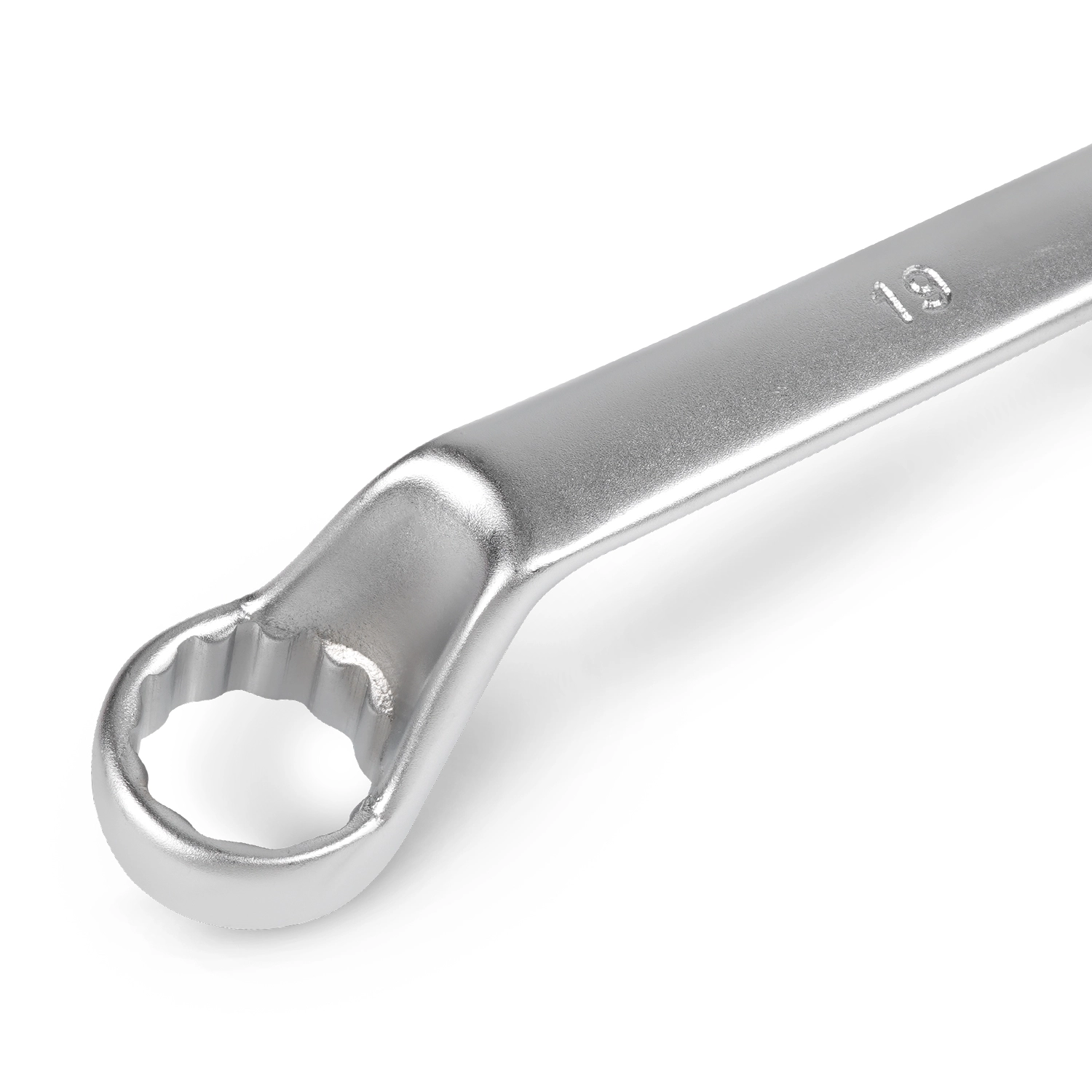 Накидной ключ – это рукоять и зажимная часть, которая охватывает весь периметр гайки. Он более удобен в эксплуатации и надежнее фиксирует крепеж, чем рожковый. Применяется для работ с высоконагруженными резьбовыми соединениями. Изогнутая на 75° коленчатая рабочая часть облегчает доступ в труднодоступные места. Кольцевые ключи имеют 12 граней. 12-тигранный ключ более распространен в использовании (поворот на 30 градусов). Из-за большого пятна контакта вероятность деформации углов сведена к нулю. Ключи изготавливаются из легированной хромованадиевой стали по стандарту DIN 838, в соответствии с ГОСТ 2906-80.