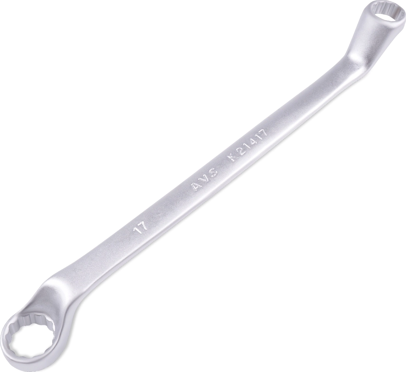 Накидной ключ – это рукоять и зажимная часть, которая охватывает весь периметр гайки. Он более удобен в эксплуатации и надежнее фиксирует крепеж, чем рожковый. Применяется для работ с высоконагруженными резьбовыми соединениями. Изогнутая на 75° коленчатая рабочая часть облегчает доступ в труднодоступные места. Кольцевые ключи имеют 12 граней. 12-тигранный ключ более распространен в использовании (поворот на 30 градусов). Из-за большого пятна контакта вероятность деформации углов сведена к нулю. Ключи изготавливаются из легированной хромованадиевой стали по стандарту DIN 838, в соответствии с ГОСТ 2906-80.