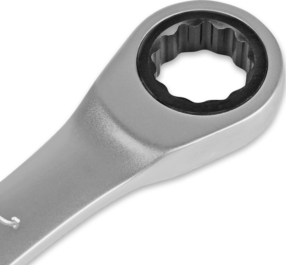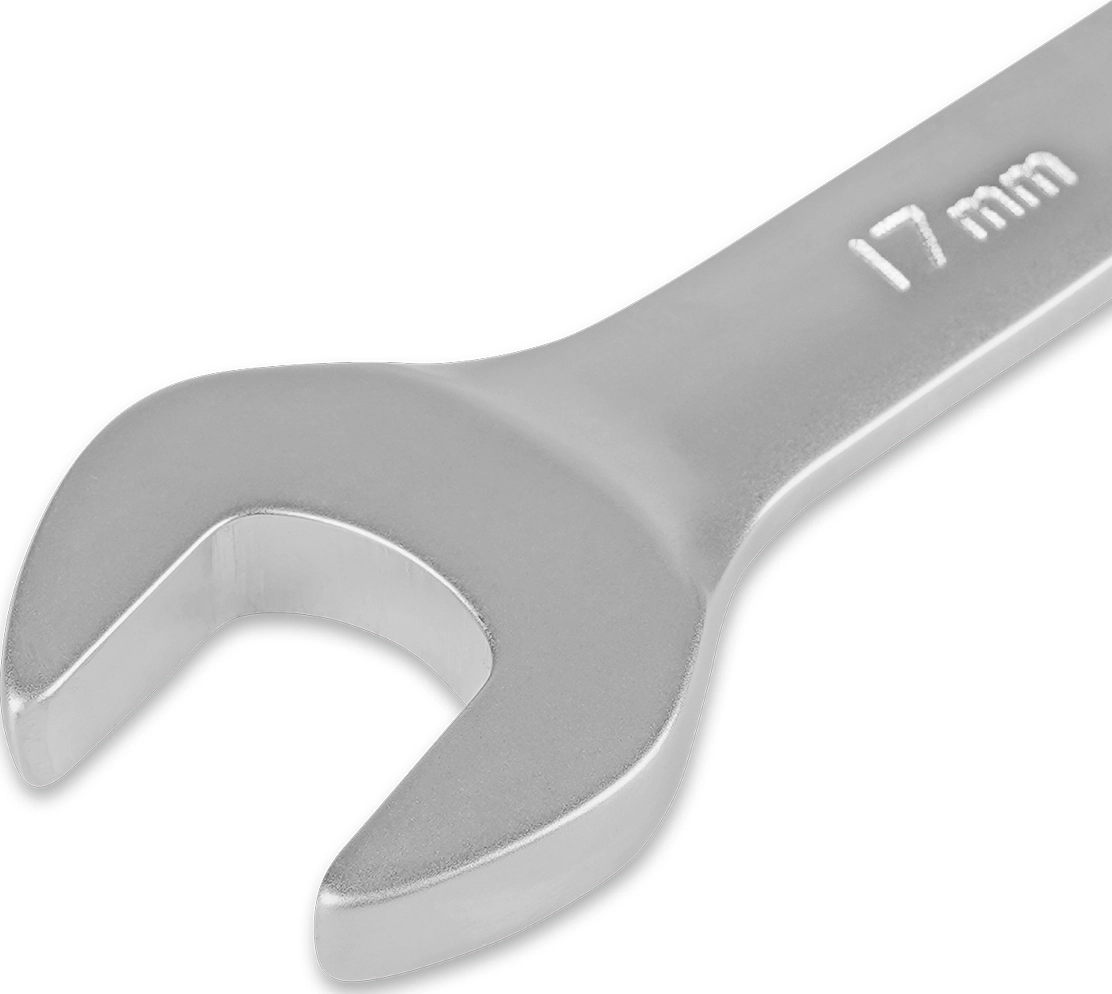 Комбинированный гаечный ключ из хромованадиевой стали с 72-зубцовым храповым механизмом в накидной части. Благодаря наличию трещотки, ключ ускоряет отворачивание и заворачивание крепежа как в обычных условиях, так и в условиях ограниченного пространства. Сатиновое покрытие трещоточного ключа обеспечивает ему дополнительную антикоррозионную стойкость.