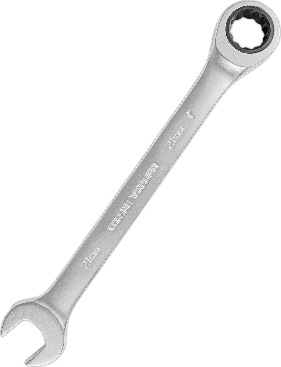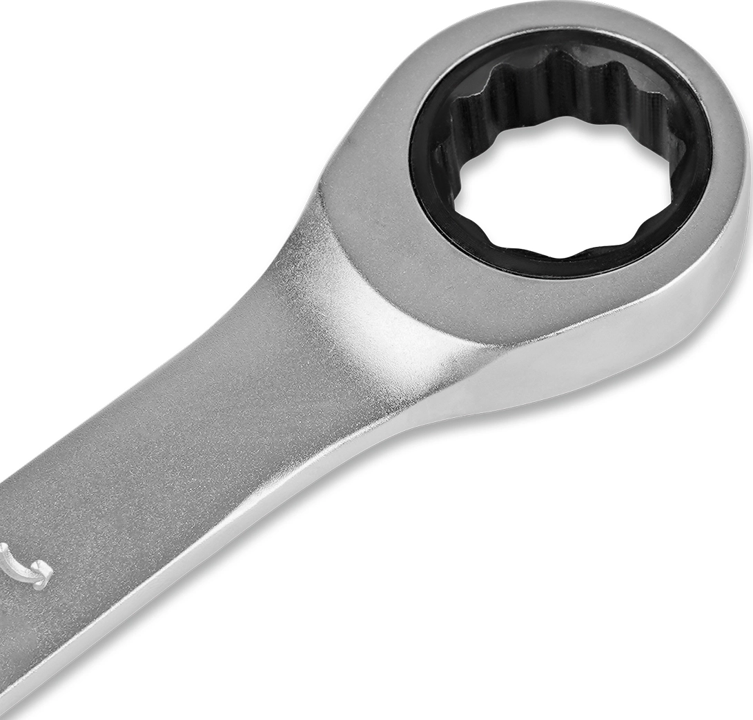 Комбинированный гаечный ключ из хромованадиевой стали с 72-зубцовым храповым механизмом в накидной части. Благодаря наличию трещотки, ключ ускоряет отворачивание и заворачивание крепежа как в обычных условиях, так и в условиях ограниченного пространства. Сатиновое покрытие трещоточного ключа обеспечивает ему дополнительную антикоррозионную стойкость.