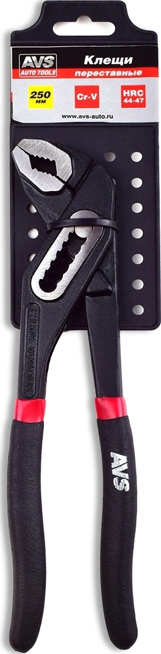 Клещи переставные AVS KLP0250 - длинна 250 мм, из хромованадиевой стали 31СrV3, твердость 44-47 HRC
