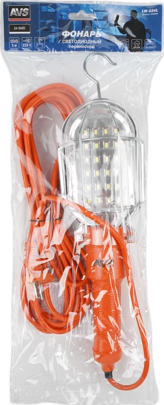 Светодиодный фонарь AVS LW-524L - работа от сети 220 В, количество светодиодов 24, тип светодиода SMD, мощность 7 W, длина шнура 5 м