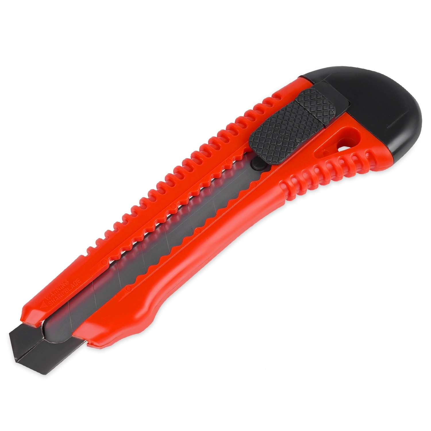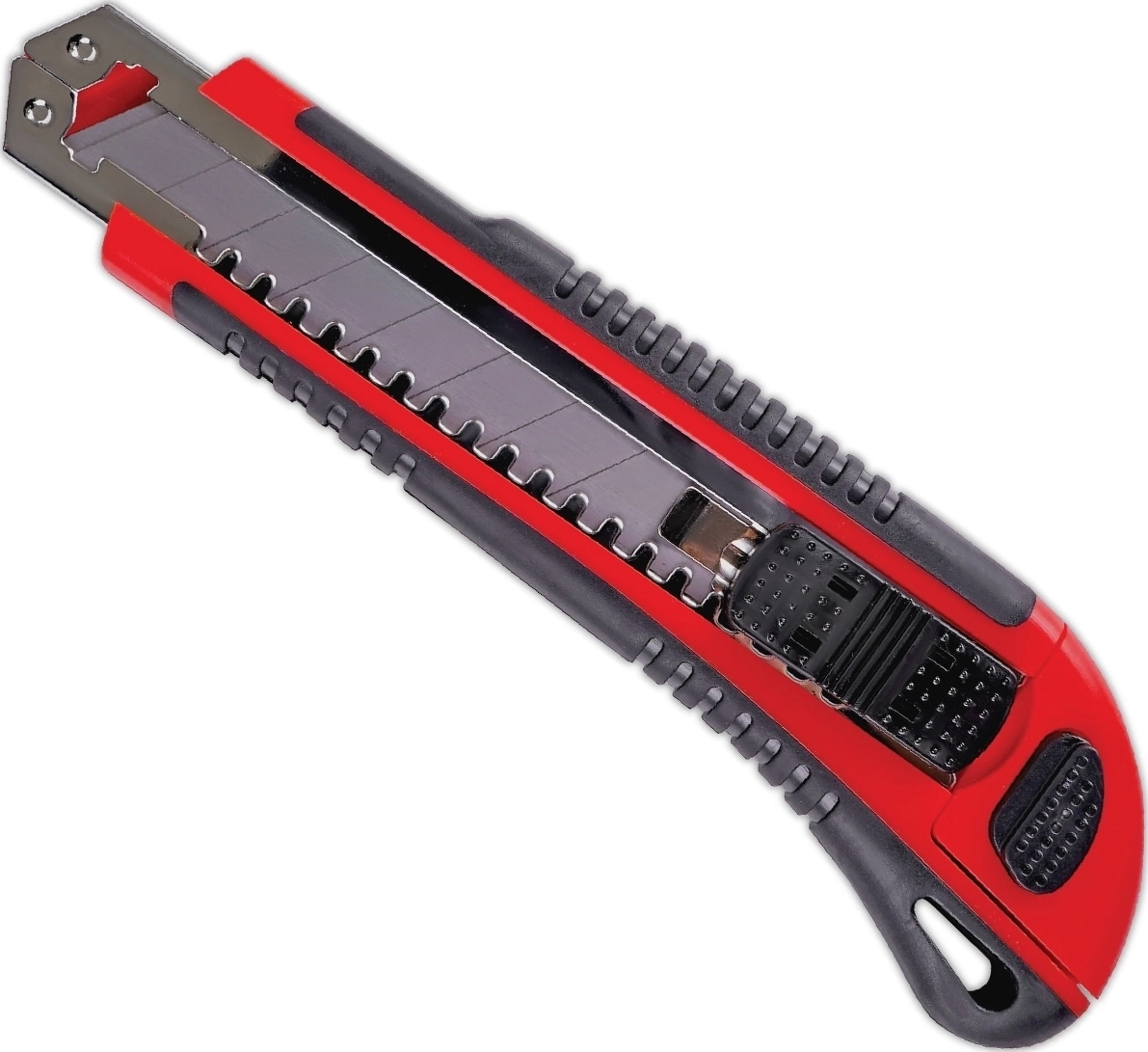 Применяется для разрезания бумаги, картона, линолеума, ковровых покрытий, гипсокартона, пластика, дерева и других материалов. Имеет двухкомпонентный эргономичный корпус, выдвижной отсек для запасных лезвий и систему автозамены лезвия.