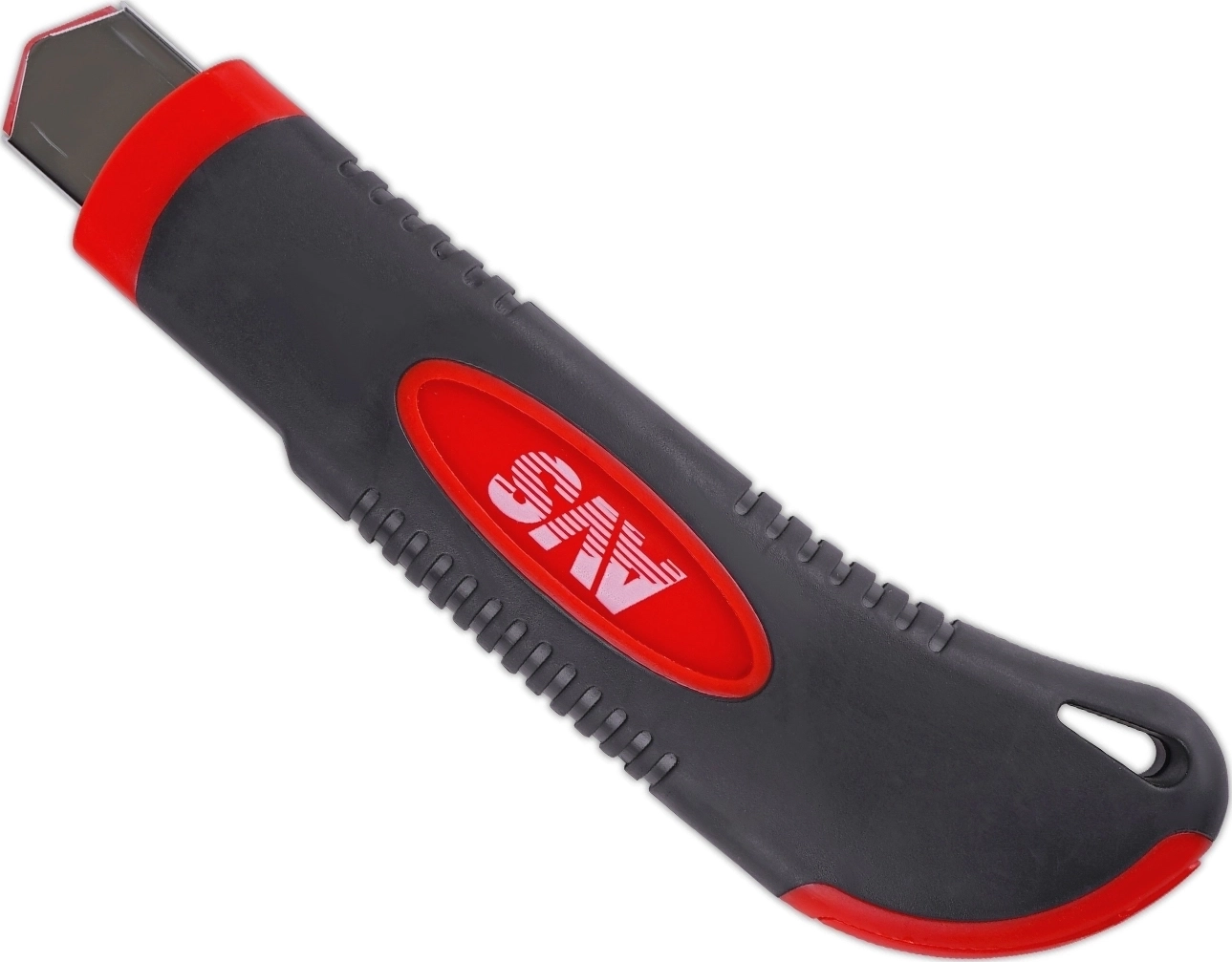 Нож выдвижной AVS NV18-3 - ширина лезвия 18 мм, металлическая направляющая, обрезиненный корпус, 3 лезвия в комплекте