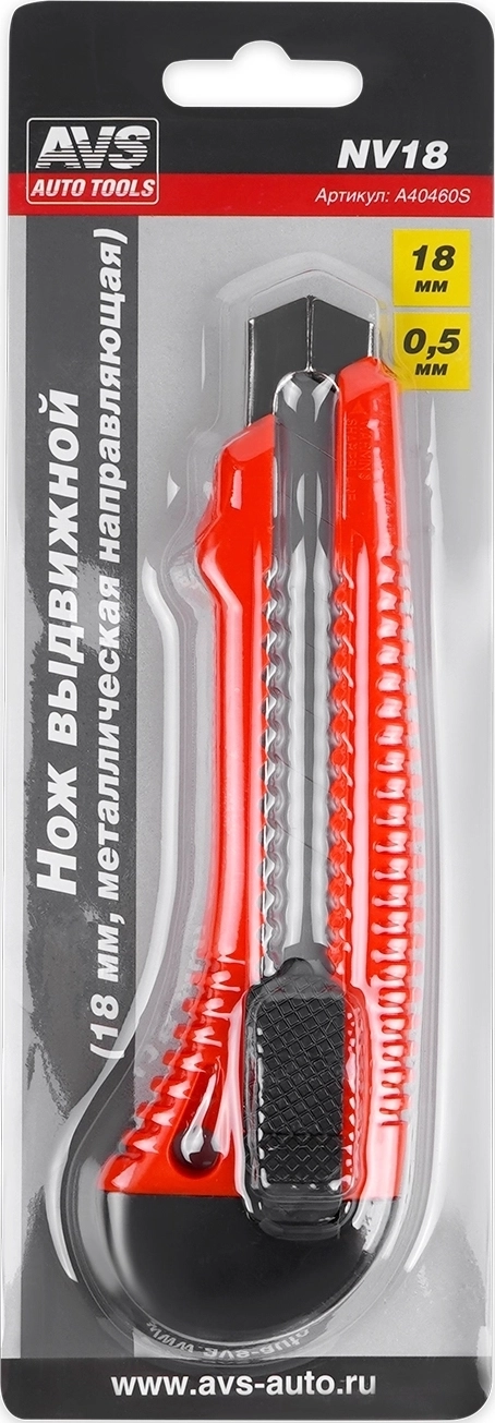 Нож выдвижной AVS NV18 - металлическая направляющая, ширина лезвия 18 мм, толщина 0.5 мм, материал сталь 60