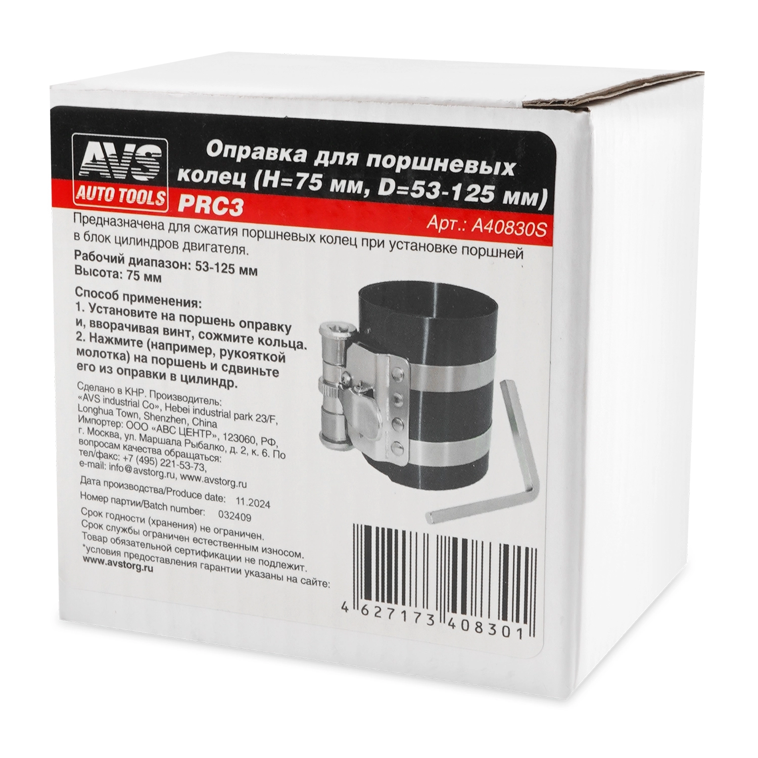 Оправка для поршневых колец (H=75 мм, D=53-125 мм) AVS PRC3