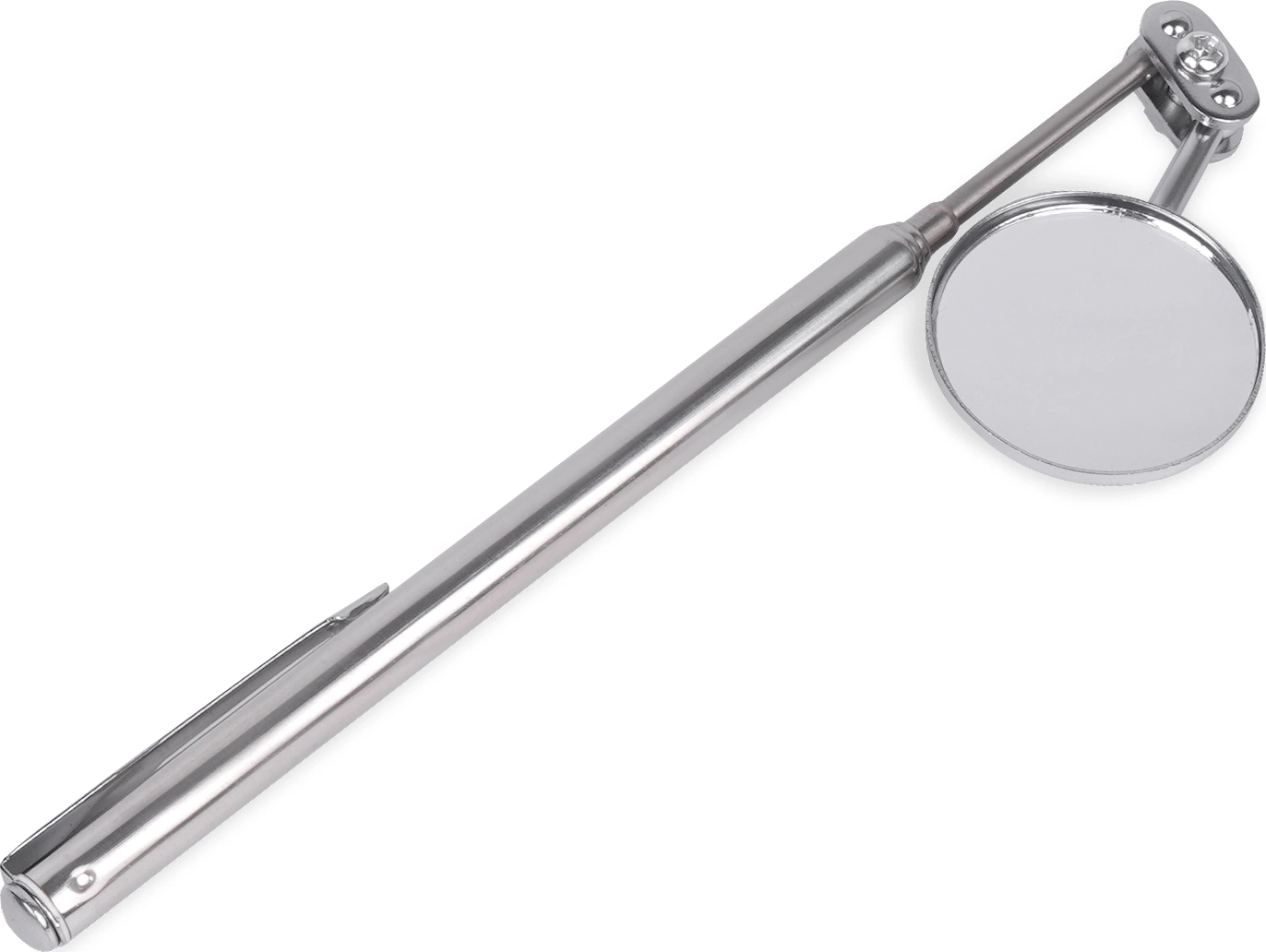 Применяется для осмотра, диагностики и работ в условиях ограниченного пространства. Шарнир позволяет изменять угол зеркала. Телескопическая конструкция обеспечивает доступ в труднодоступные, заглубленные места и сохраняет компактные размеры в сложенном виде. Оснащено держателем-клипсой для крепления в кармане или на ремне.