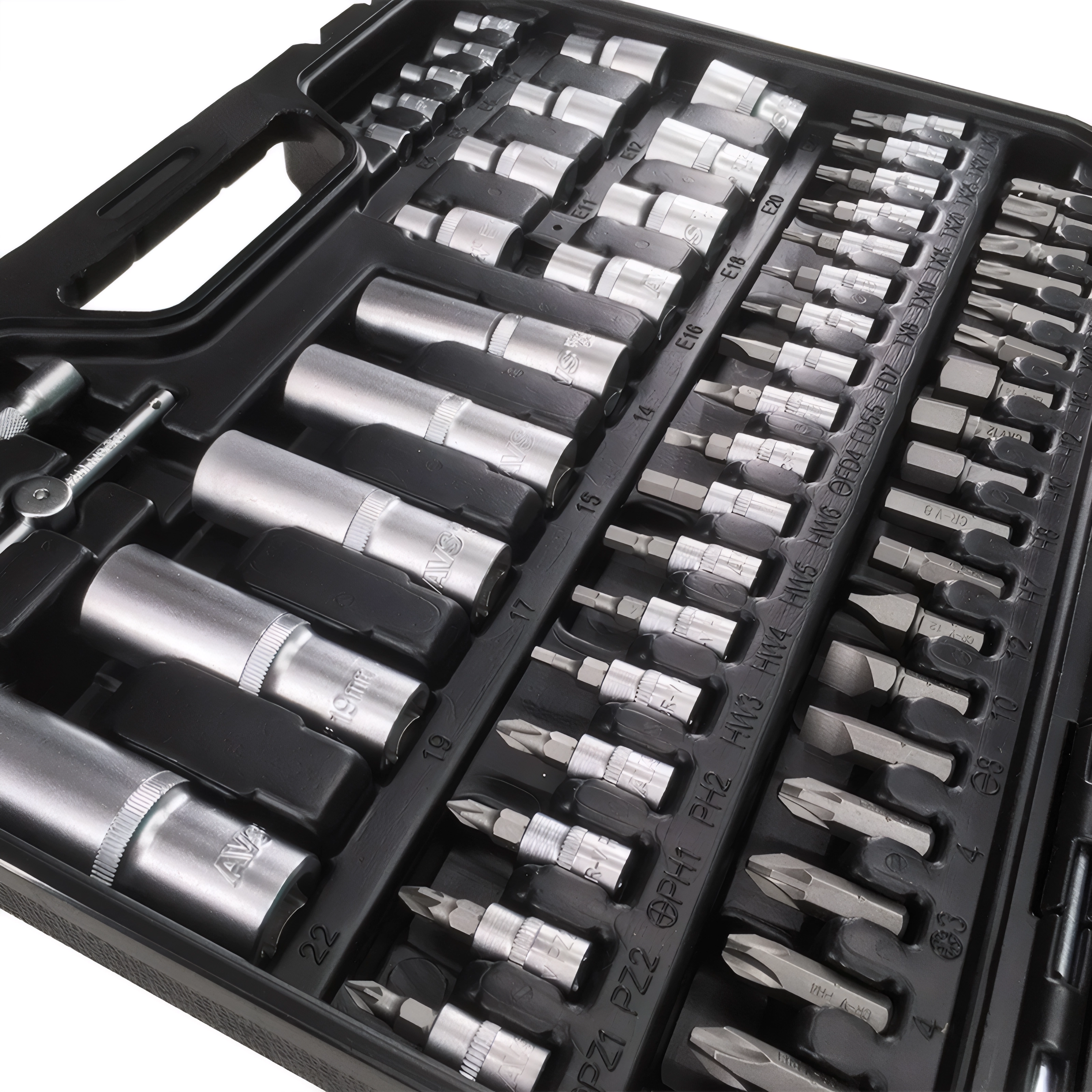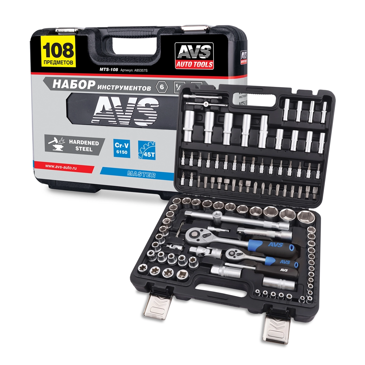 Набор инструментов AVS ATS-108 - 108 предметов (головки 1/4, 1/2, биты, ключи и т.д), пластиковый кейс