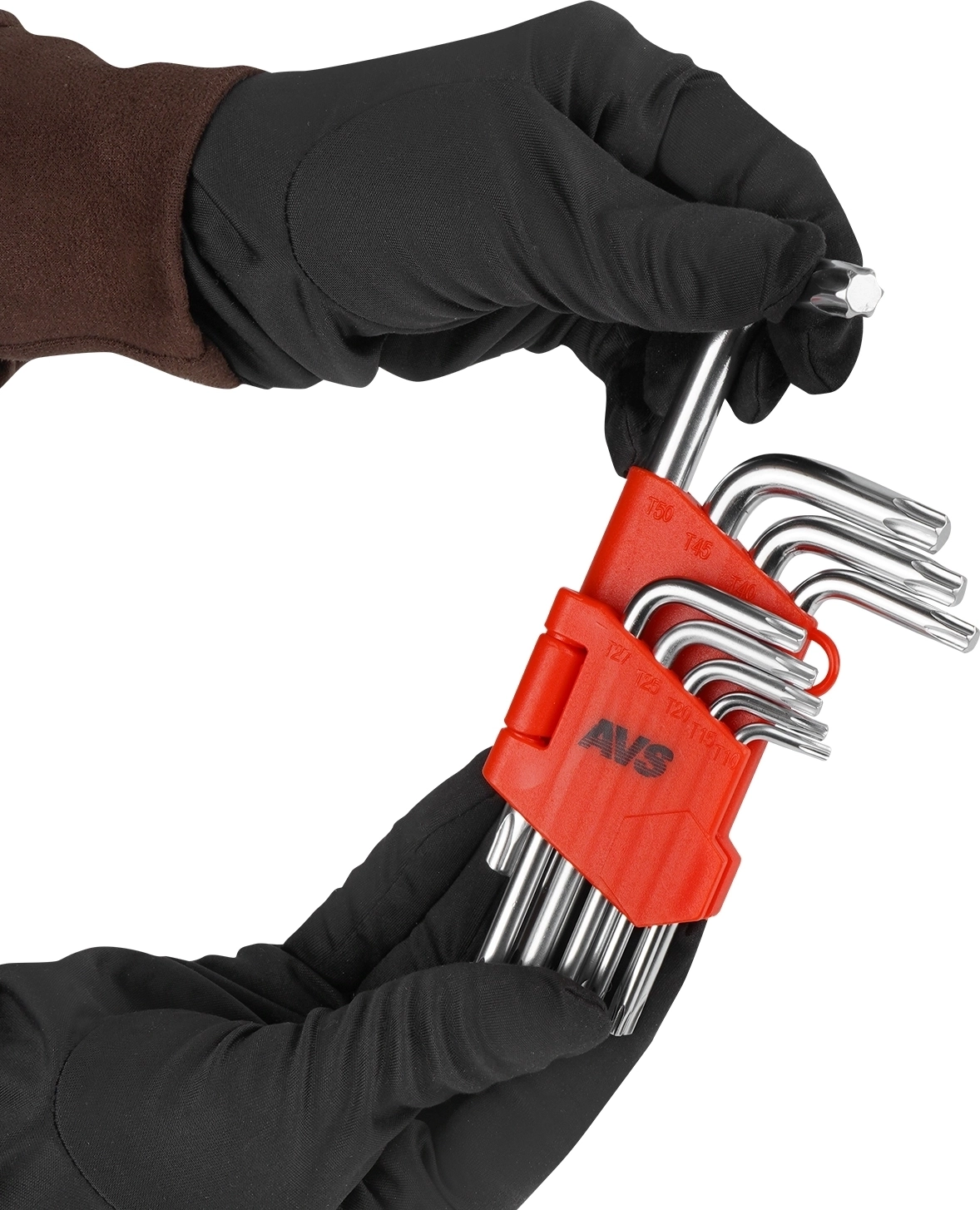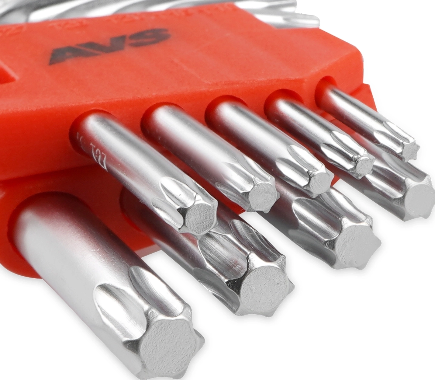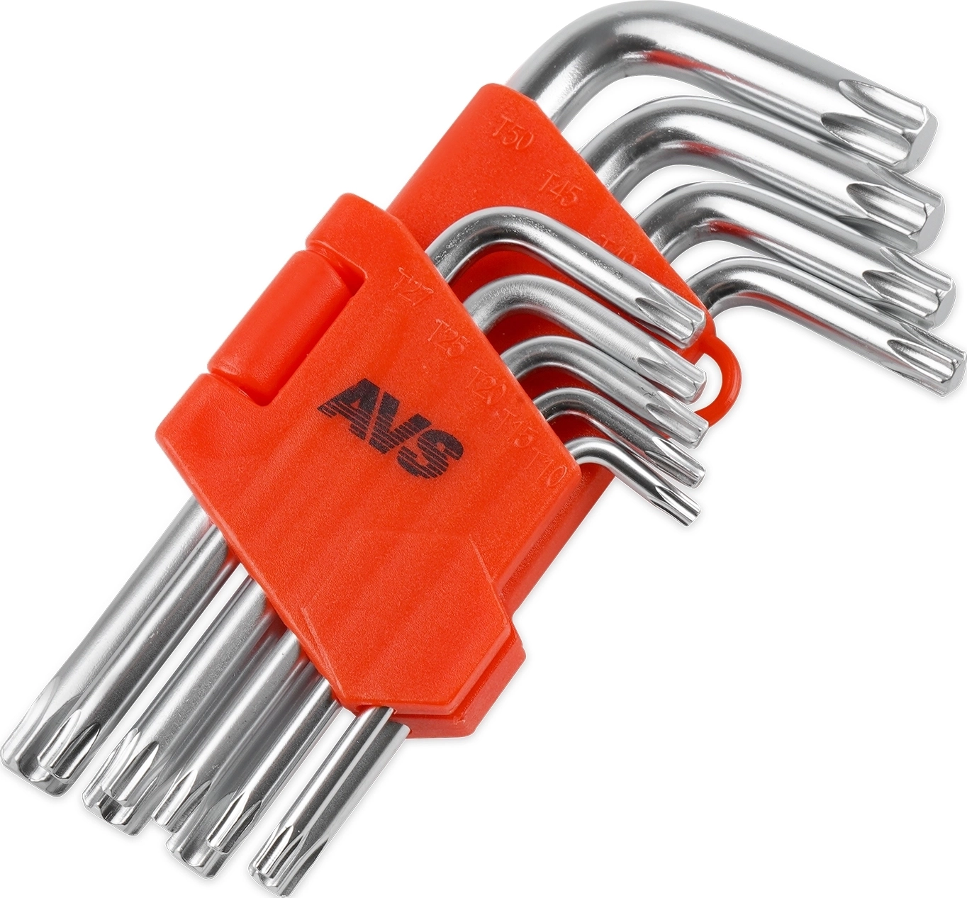 Набор ключей торцевых изогнутых TORX коротких АVS TXS-9 (T10-T50) 9 предметов - материал хромованадиевая сталь (CrV), покрытие матовое, твердость 48-52HRC