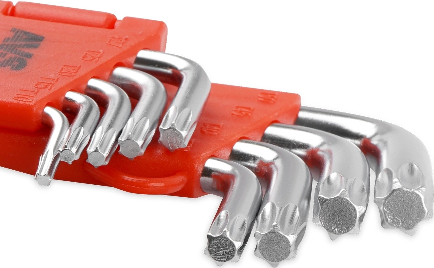 Набор состоит из Г-образных ключей TORX, в пластиковом держателе. Предназначен для работы с соединениями с шлицем TORX.