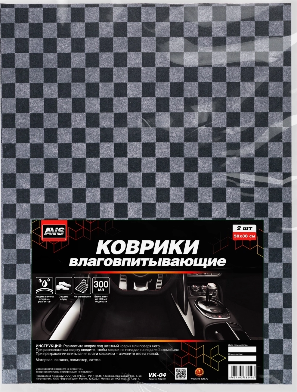 Коврик влаговпитывающий AVS VK-04 (50 х 38 см.) 2 шт., рисунок в клетку