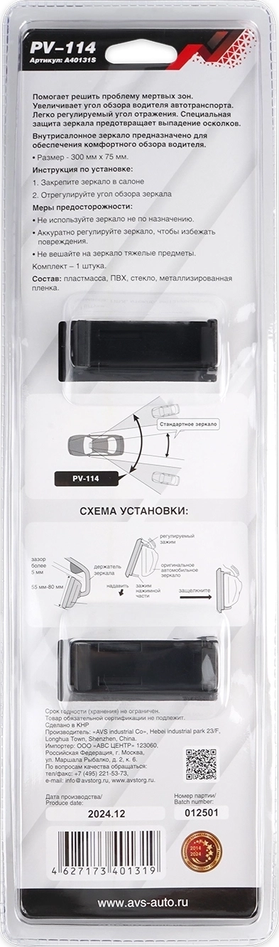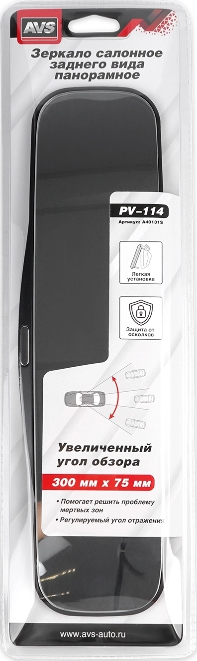 Зеркало AVS PV-114 внутрисалонное панорамное - размер 300х75 мм, комплект 1 шт., состав пластмасса, ПВХ, стекло, металлизированная пленка