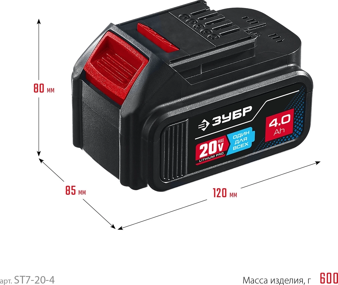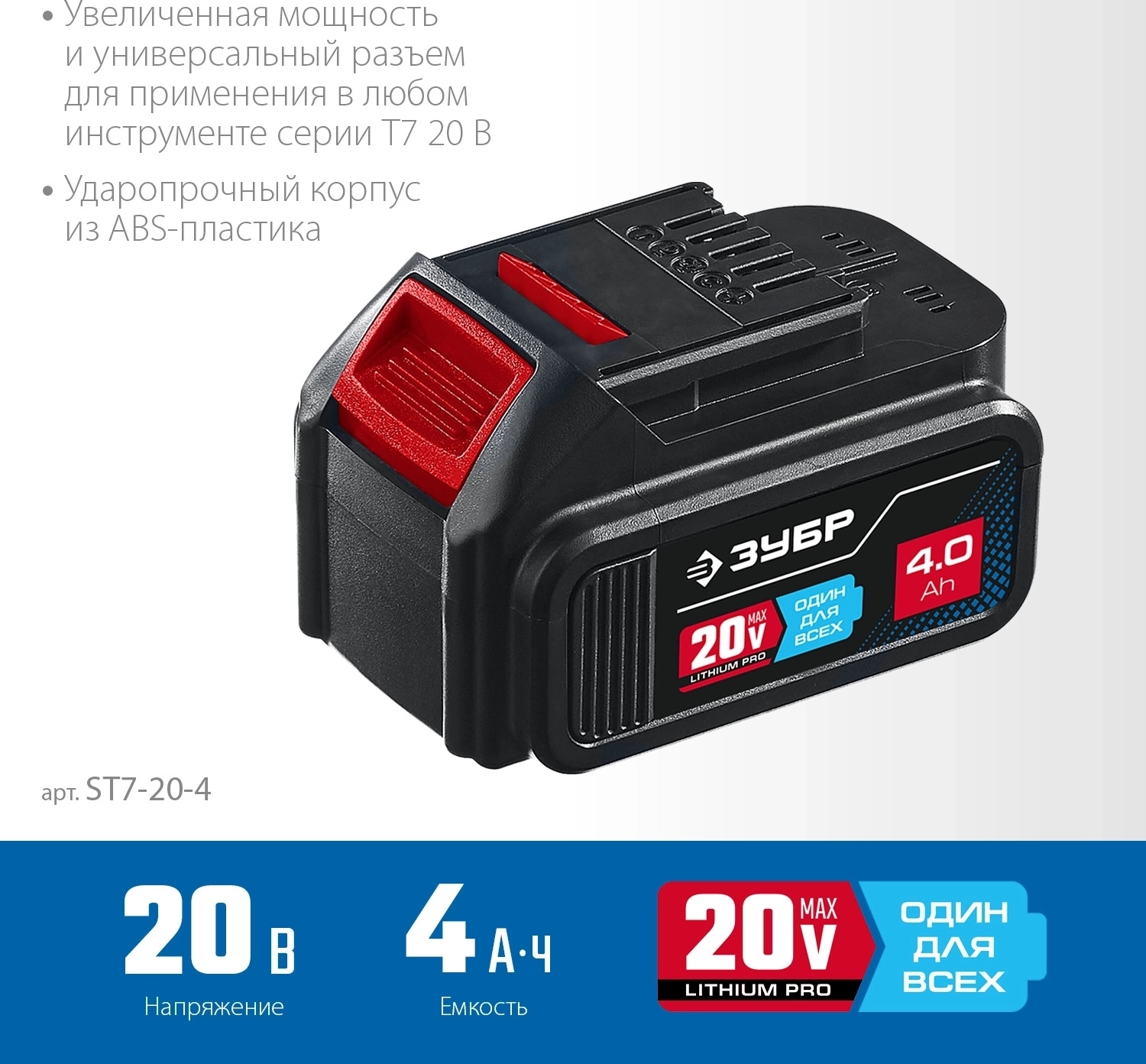 Аккумуляторная батарея ЗУБР T7 20 В 4.0 А·ч