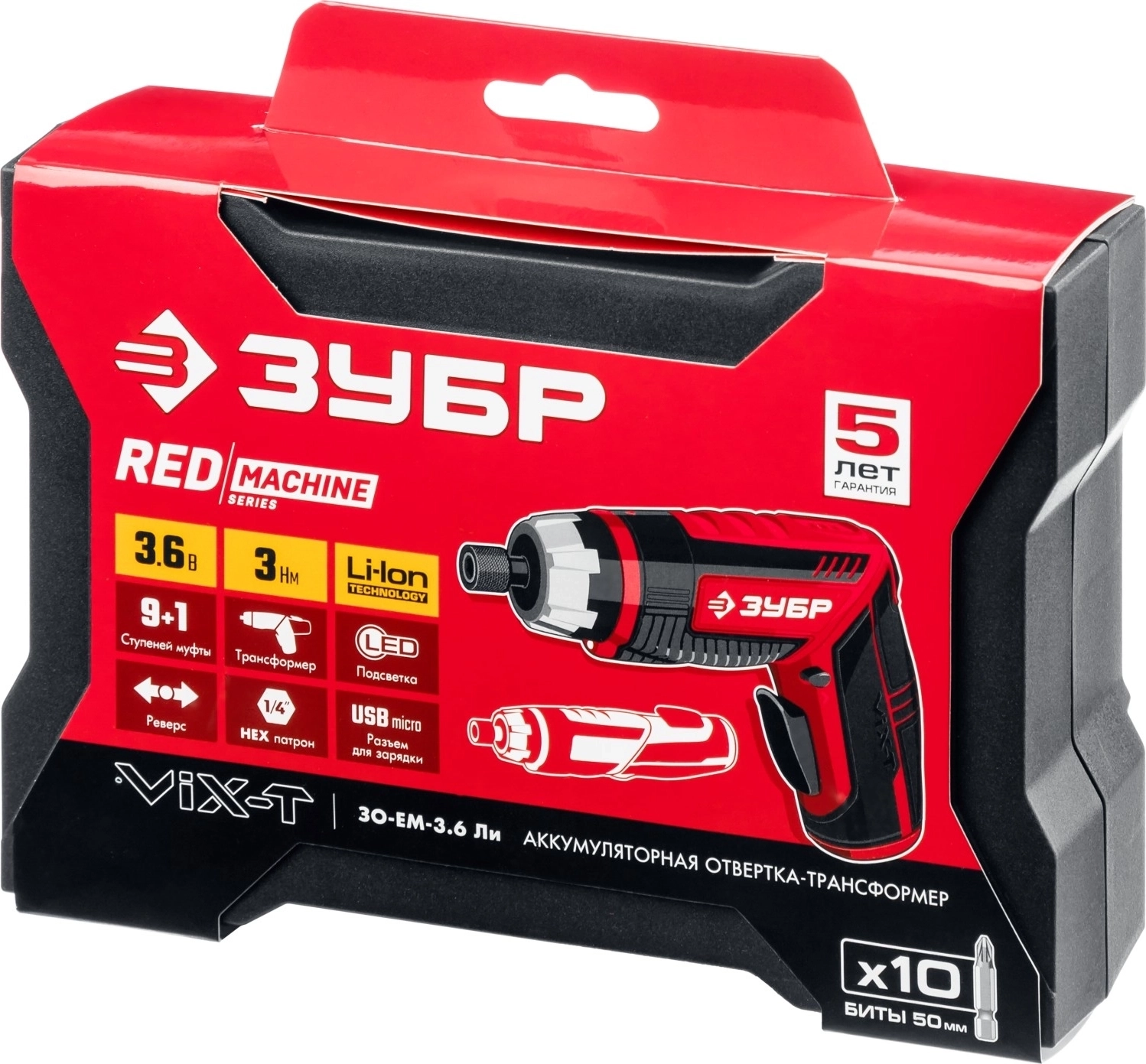 Аккумуляторная отвертка ЗУБР ViX-T 3.6 В, 10 бит