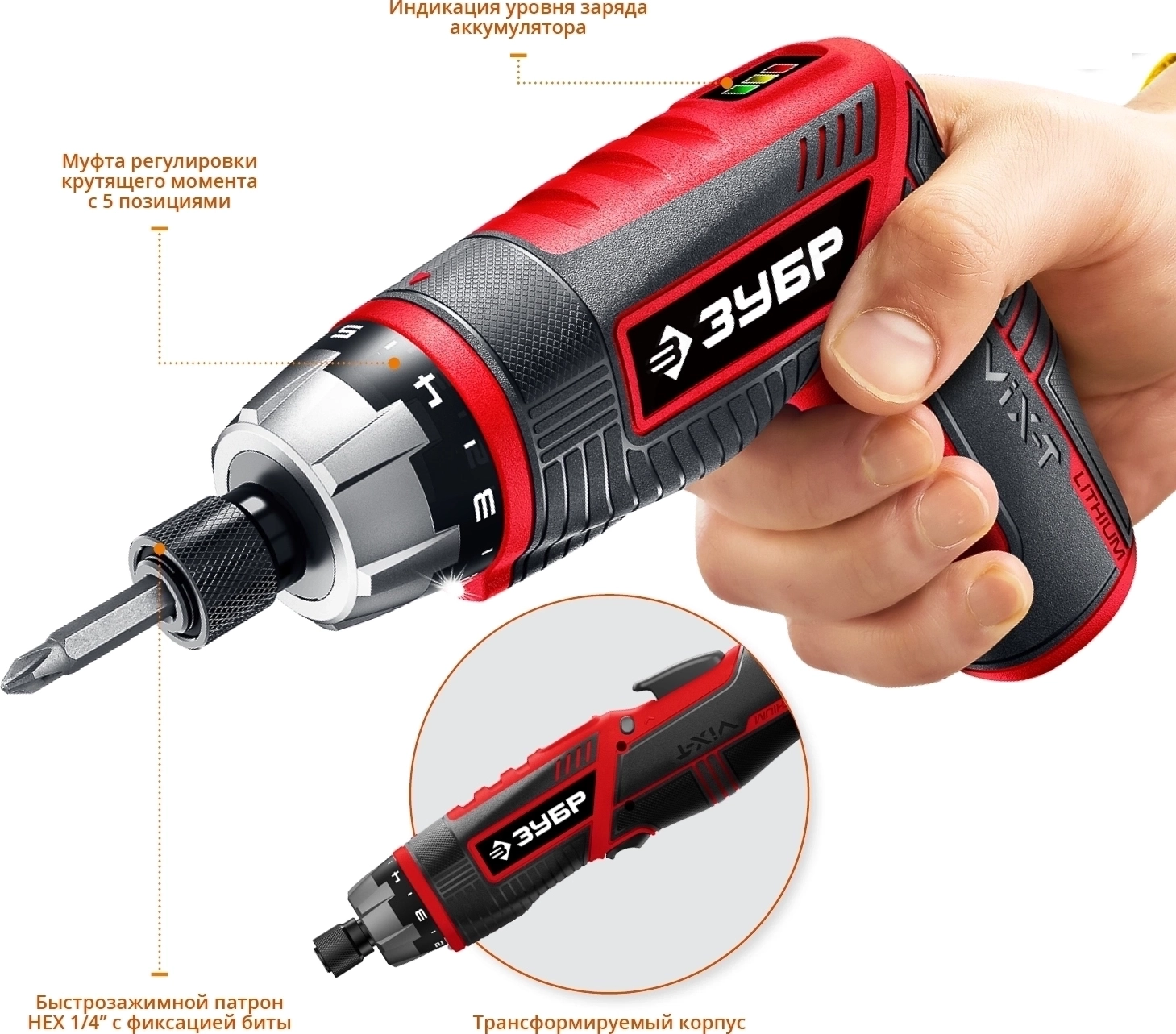 Инструмент для заворачивания/отворачивания крепежа с Li-Ion аккумулятором - незаменимый помощник в быту. Многофункциональность, мощность, удобство в эксплуатации, легкая замена инструмента, встроенная подсветка, настройка и трансформация под любой режим работы, большой набор сменного инструмента - неоспоримые преимущества отвертки ЗУБР