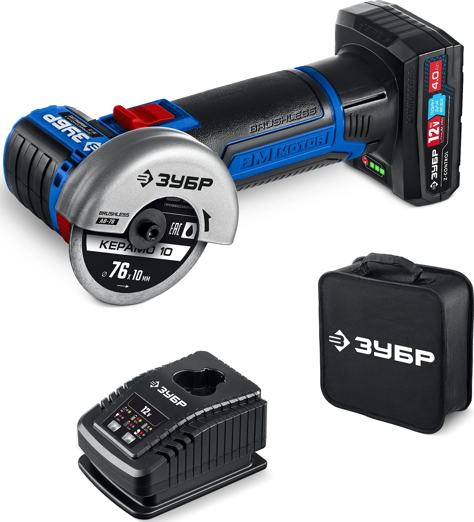 Аккумуляторная УШМ бесщеточная 12 В, D76мм, 2 АКБ Т7 4 Ач, сумка арт. 117161