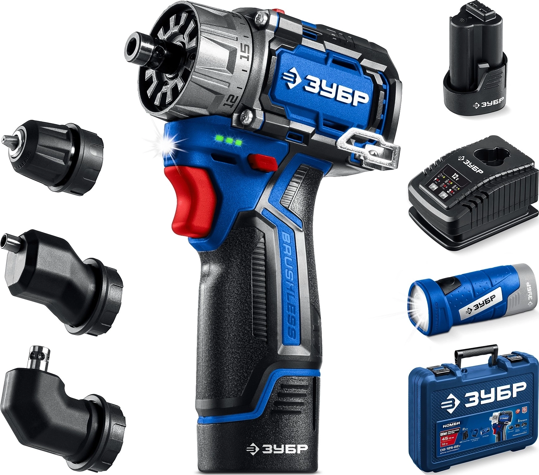 Дрель-шуруповерт + фонарь КОМБИ 12 В 45 Н·м 2 АКБ тип Т7 2 А·ч кейс арт. 116268