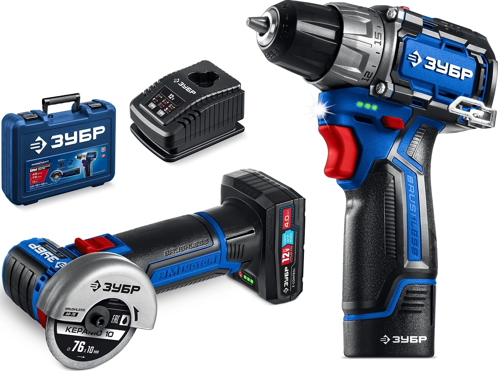 Дрель-шуруповерт + мини-УШМ КОМПАКТ 12 В 45 Н·м 2 АКБ тип Т7 4 и 2 А·ч кейс арт. 116269