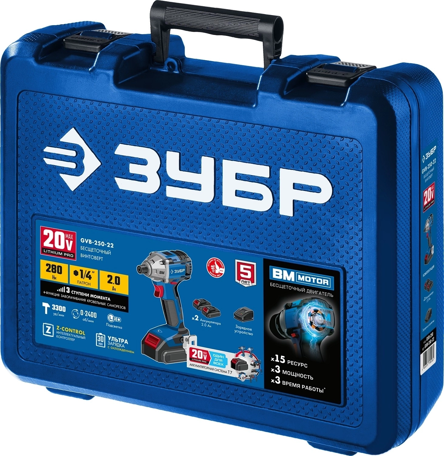 Винтоверт бесщеточный Т7 20 В 280 Н·м 2 АКБ 2 А·ч кейс арт. 110921