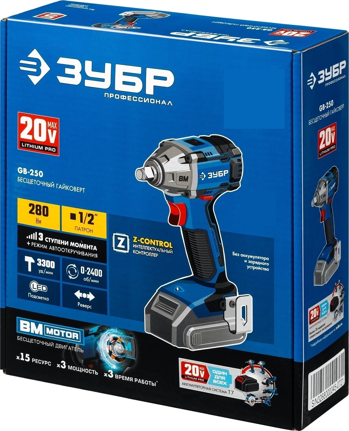 Гайковерт бесщеточный V1 20 В 300 Н·м 1 АКБ 4 А·ч арт. 110574