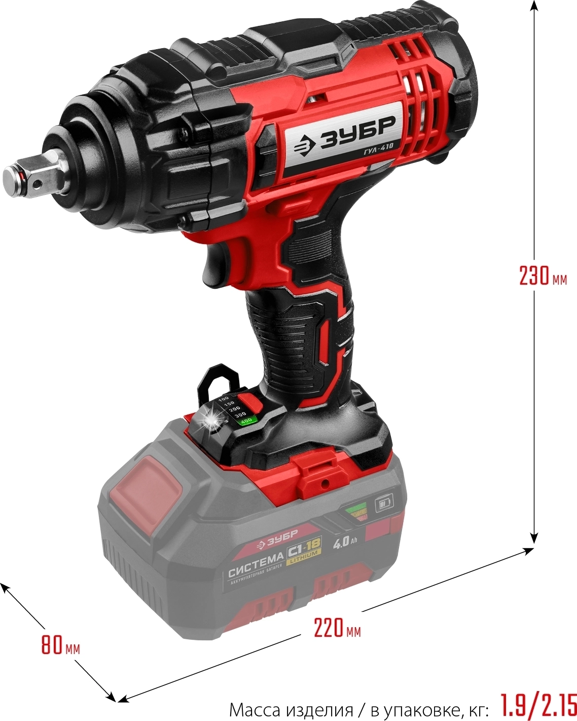Гайковерт ударный С1-18 18 В 400 Н·м 1 АКБ 4 А·ч арт. 110796