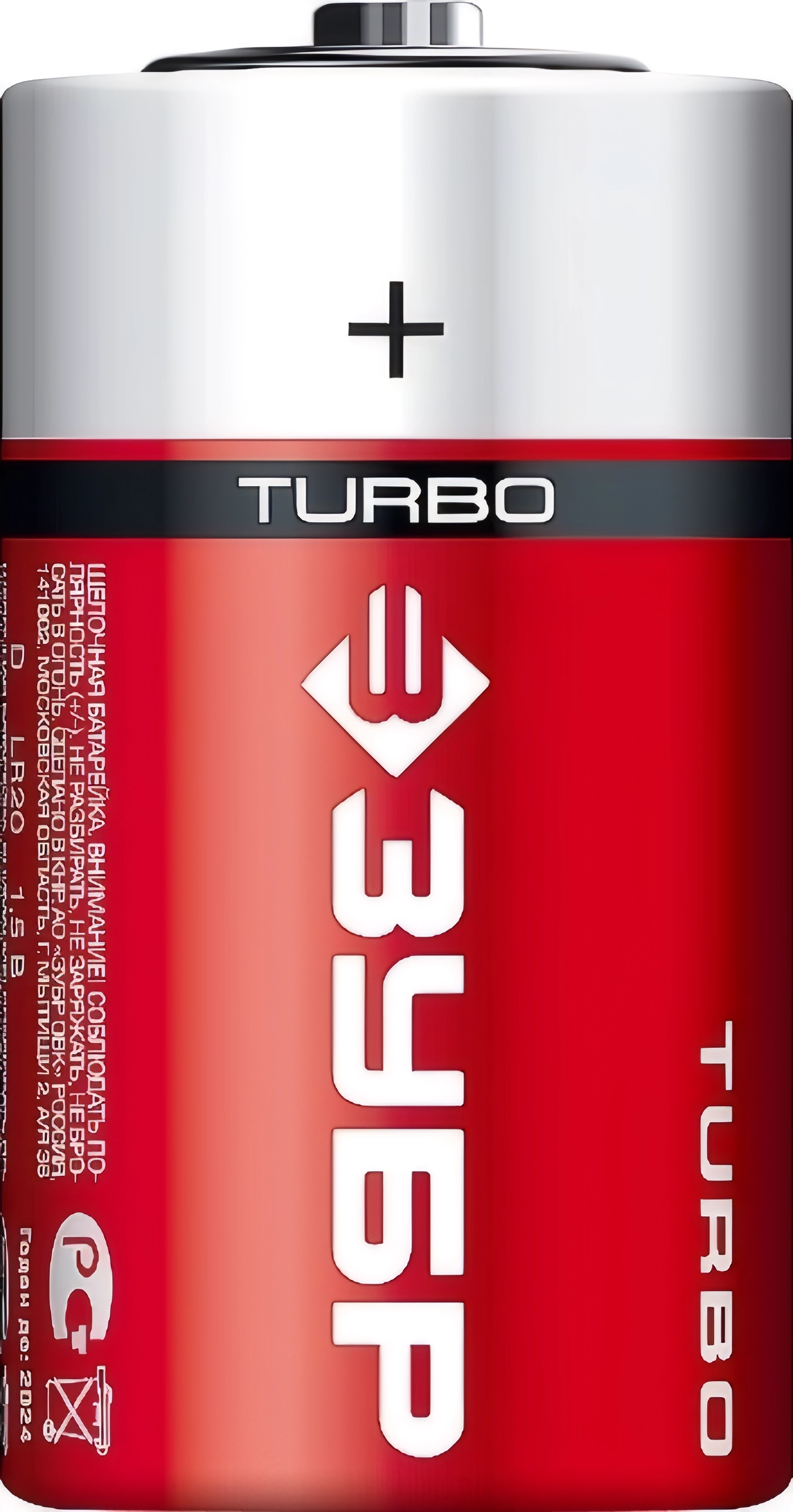 Алкалиновая батарейка ЗУБР TURBO, D х 2, 1.5 В