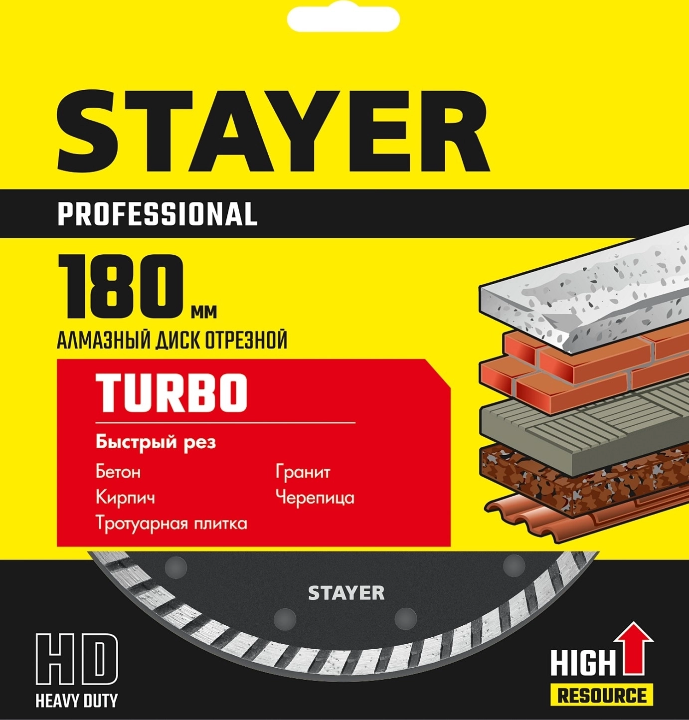 Алмазный диск PROFESSIONAL STAYER TURBO d180 мм (22.2 х 7 х 2.6 мм)