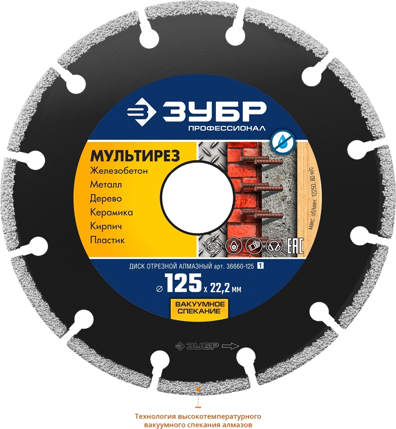 Алмазный диск ЗУБР МУЛЬТИРЕЗ 125 мм 22.2 мм 5х2.2 мм
