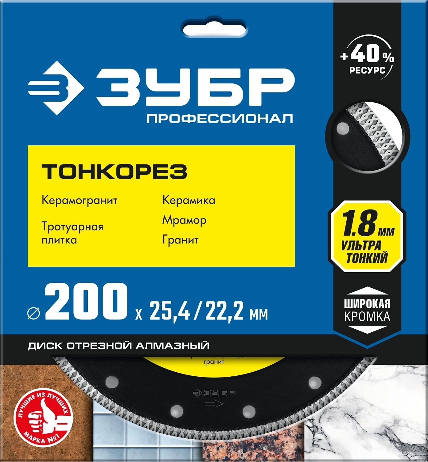 Алмазный диск ЗУБР ТОНКОРЕЗ 200х1.8 мм ультратонкий