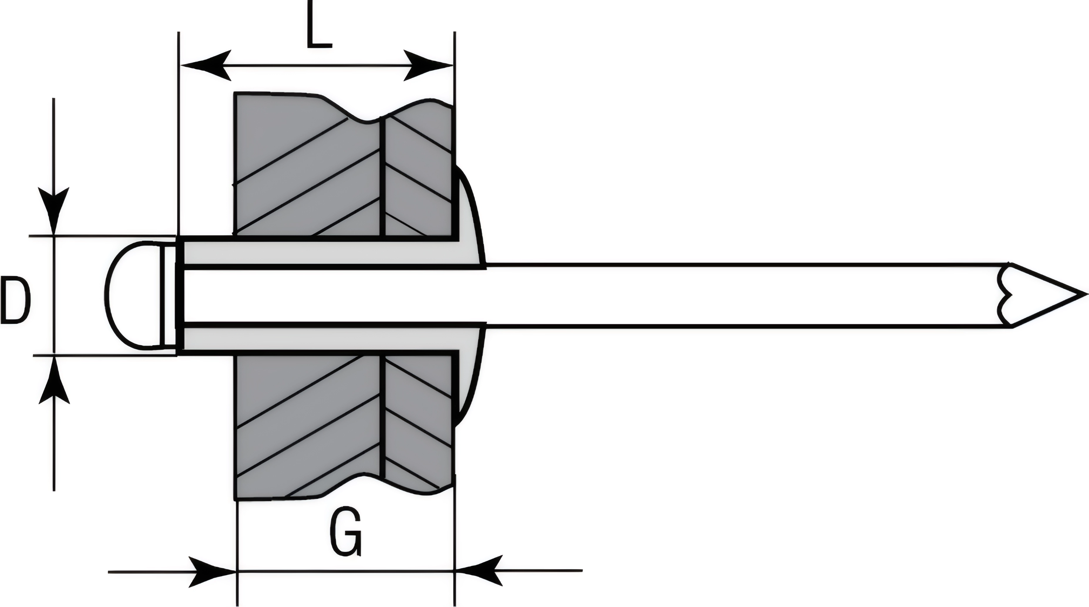 - Корпус заклёпки изготовлен из алюминиевого сплава AlMg2.5 и обладает высокой пластичностью и коррозионной стойкостью.