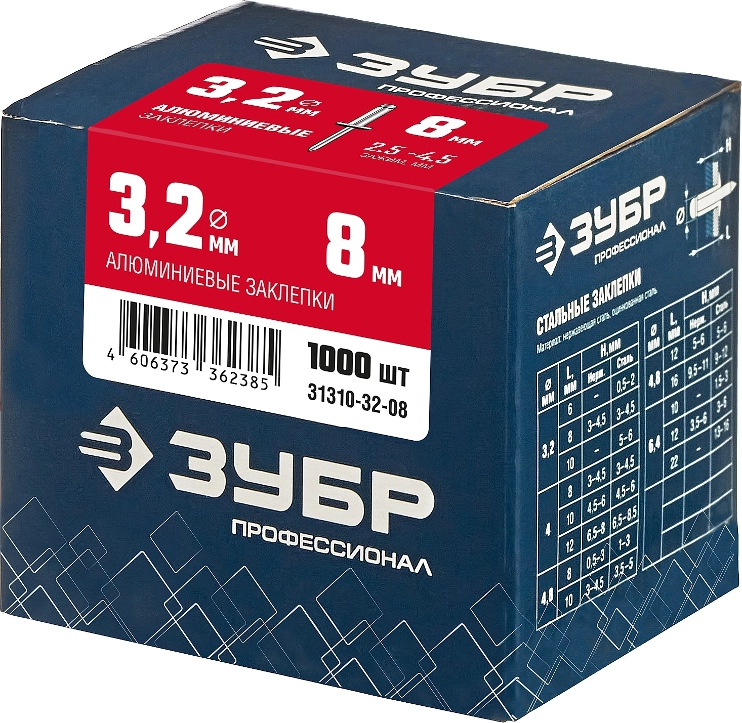Алюминиевые заклепки ЗУБР 3.2 x 8 мм 1000 шт