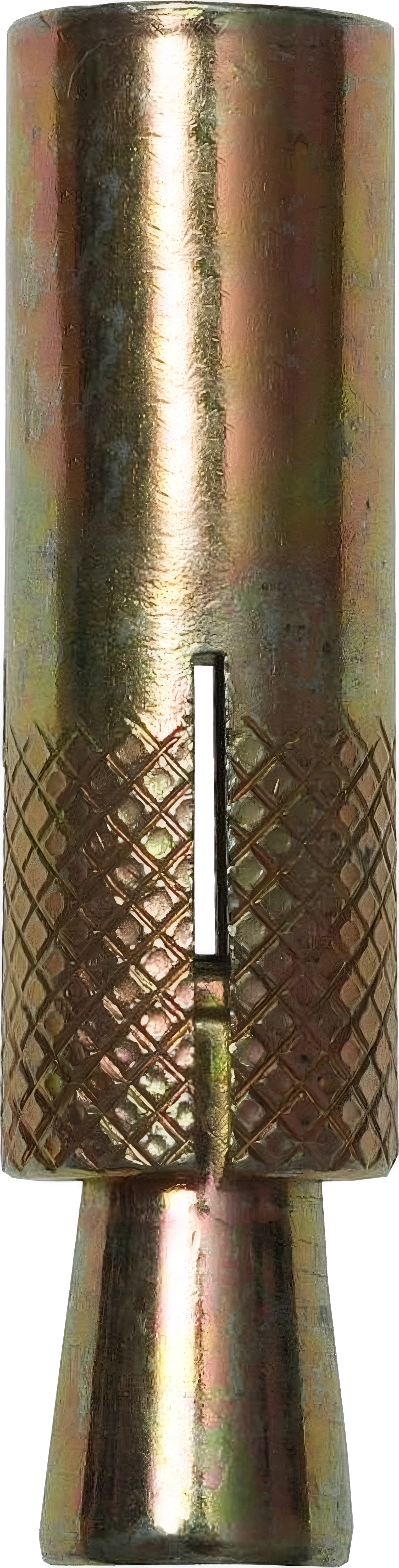 Анкеры забивные с клином (конусообразная гайка) изготовлены из высококачественной стали. Обеспечивают более высокие вырывные нагрузки по сравнению с дюбелями и позволяют крепить различные элементы и конструкции к несущим основаниям. Конструкция анкера состоит из нераспорной части, которая не участвует в закреплении, и распорной (рабочей) зоны, которая изменяет свои размеры (форму).