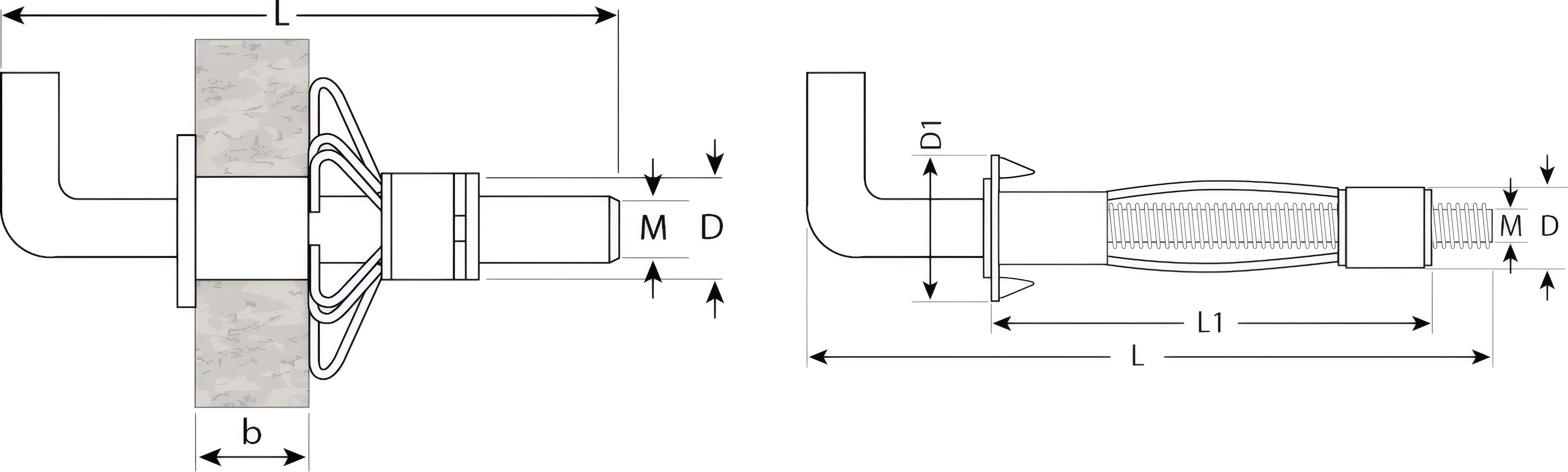 Для крепления различных конструкций к пустотелым стеновым панелям, гипсокартону, ДСП, гипсоволоконным листам (ГВЛ), потолочным покрытиям с пустотами. Анкер устанавливается в предварительно просверленное и очищенное от буровой муки отверстие.