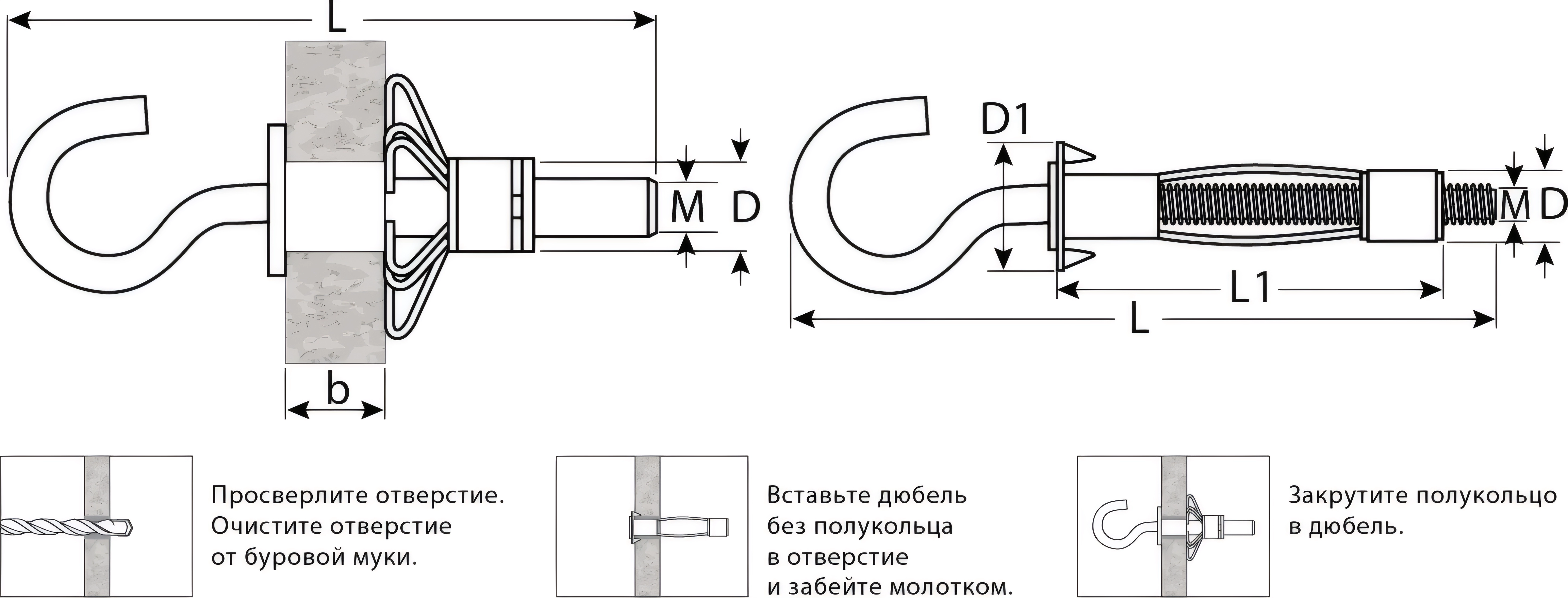 Анкер с полукольцом для пустотелых конструкций ЗУБР МОЛЛИ, М4 х 32 х 8 мм, 100 шт