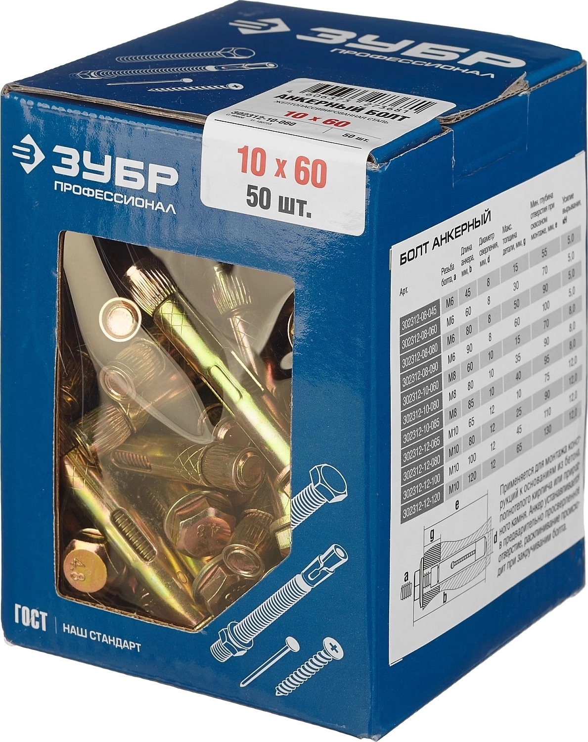 Анкерный болт ЗУБР 10 х 60 мм 50 шт