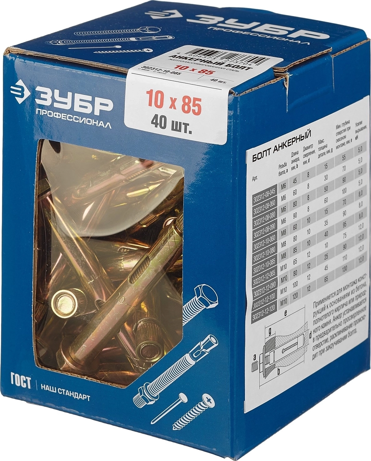 Анкерный болт ЗУБР 10 х 85 мм 40 шт
