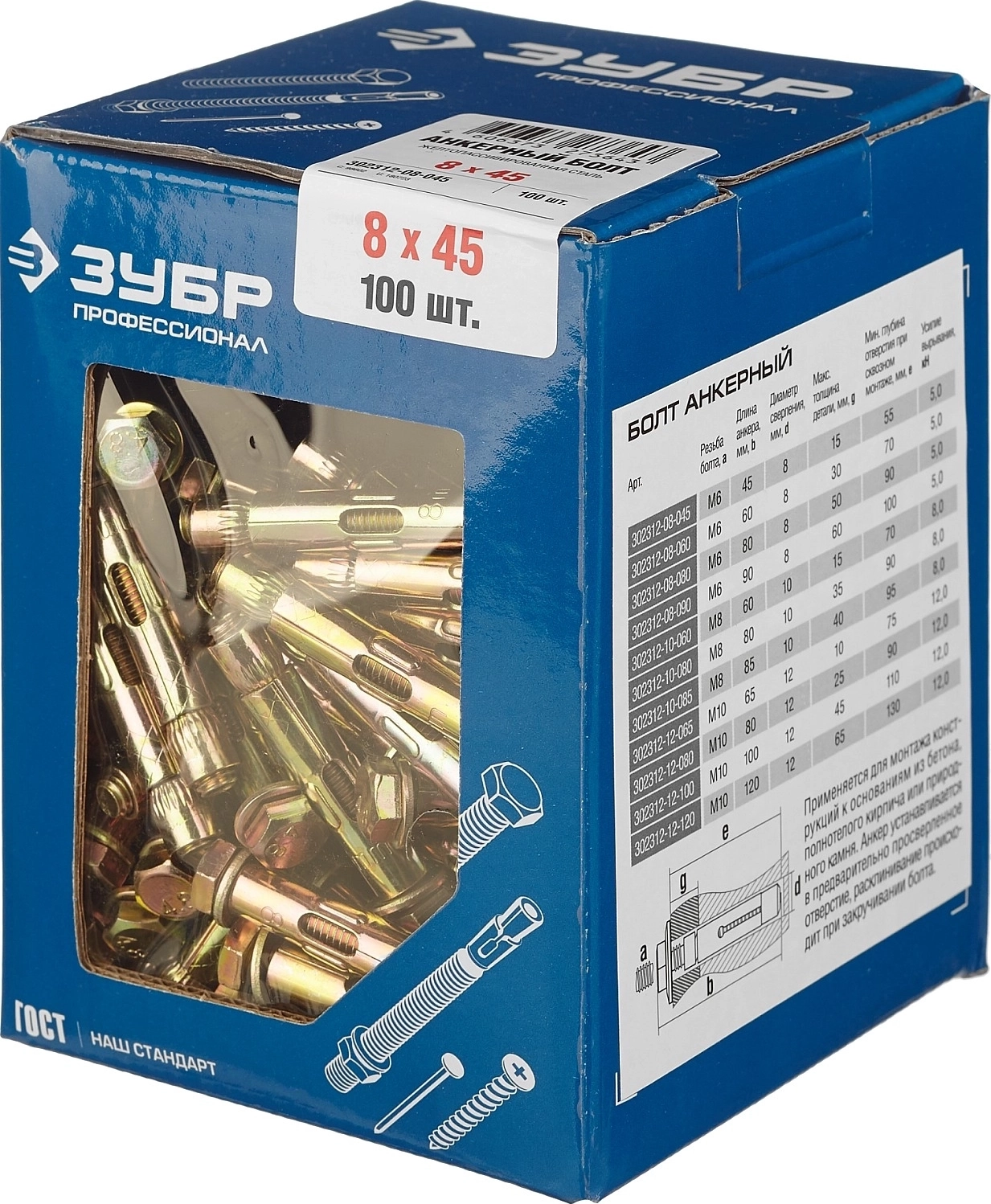 Анкерный болт ЗУБР 8 х 45 мм 100 шт