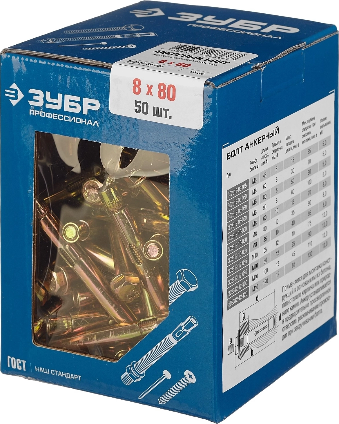 Анкерный болт ЗУБР 8 х 80 мм 50 шт