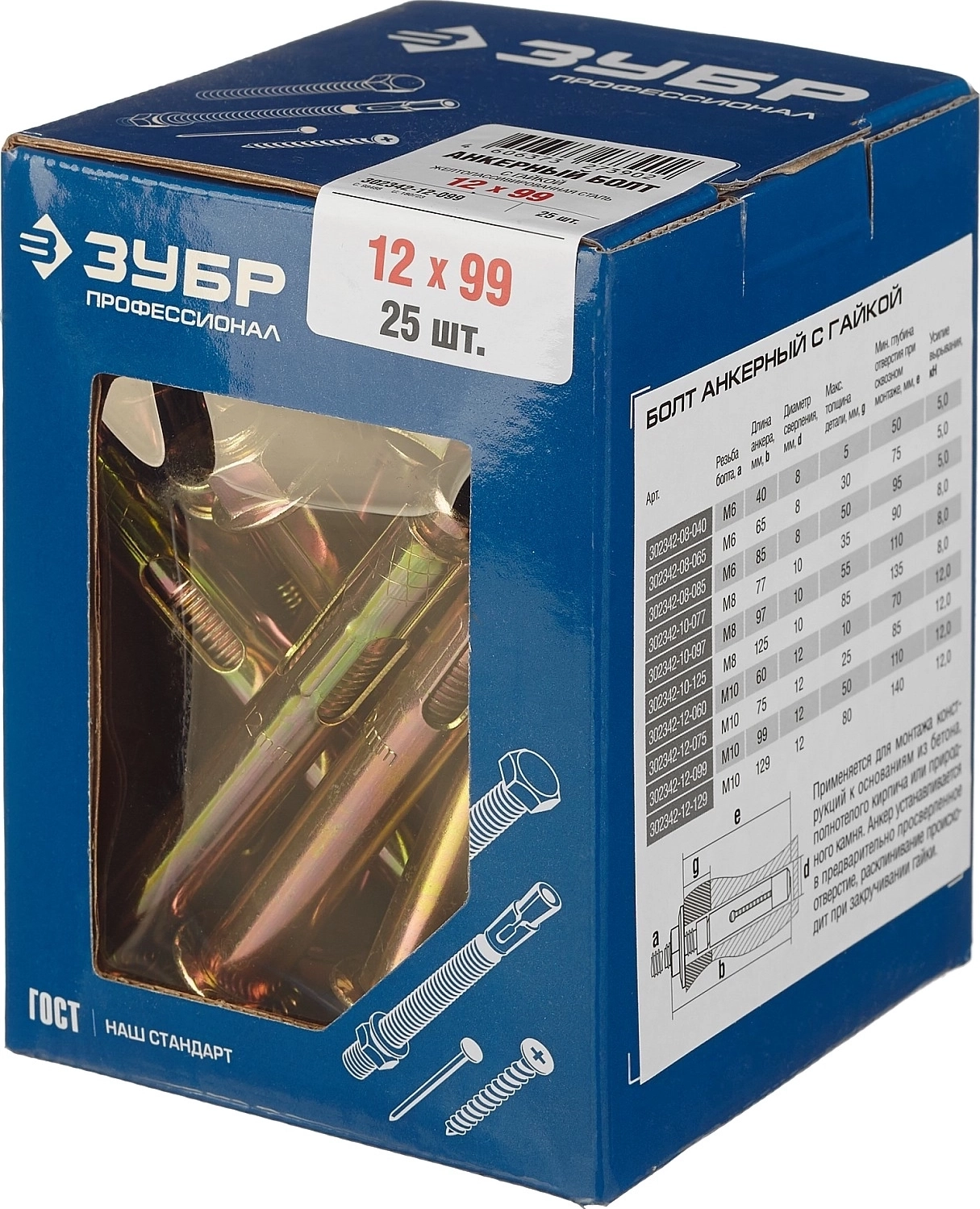 Анкерный болт с гайкой ЗУБР М12 х 99 мм 25 шт