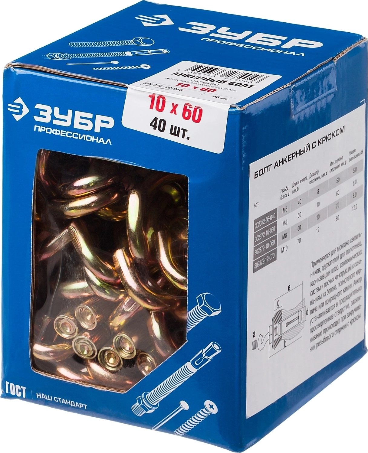 Анкерный болт с крюком ЗУБР М10 х 60 мм 40 шт