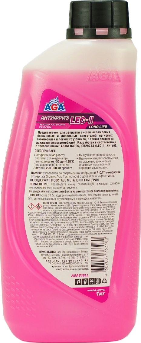 Антифриз готовый AGA LEC-II розовый, -50С, 1кг