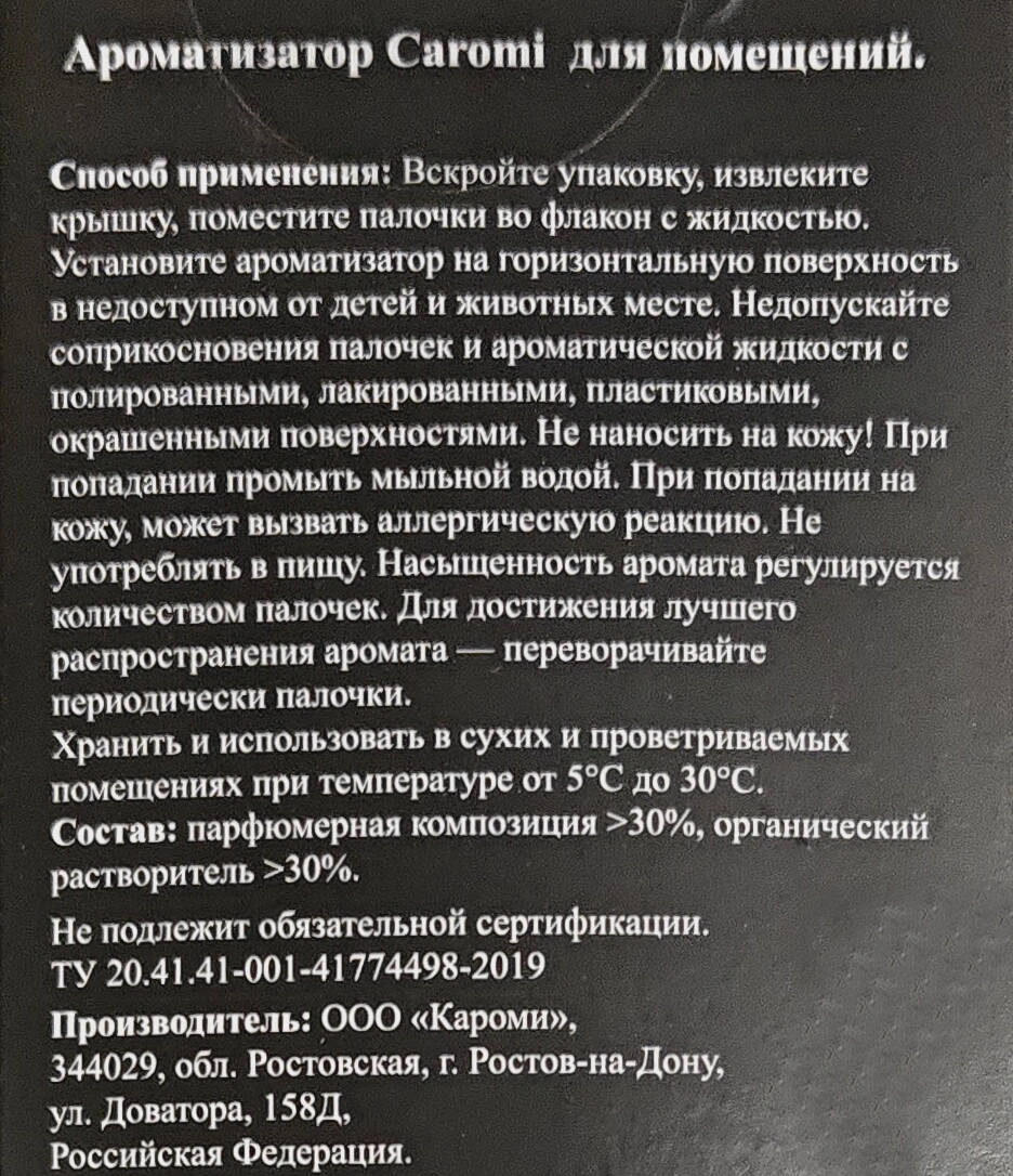 Ароматизатор для помещения CAROMI Musk vanilla (Мускус и ваниль) 80мл.