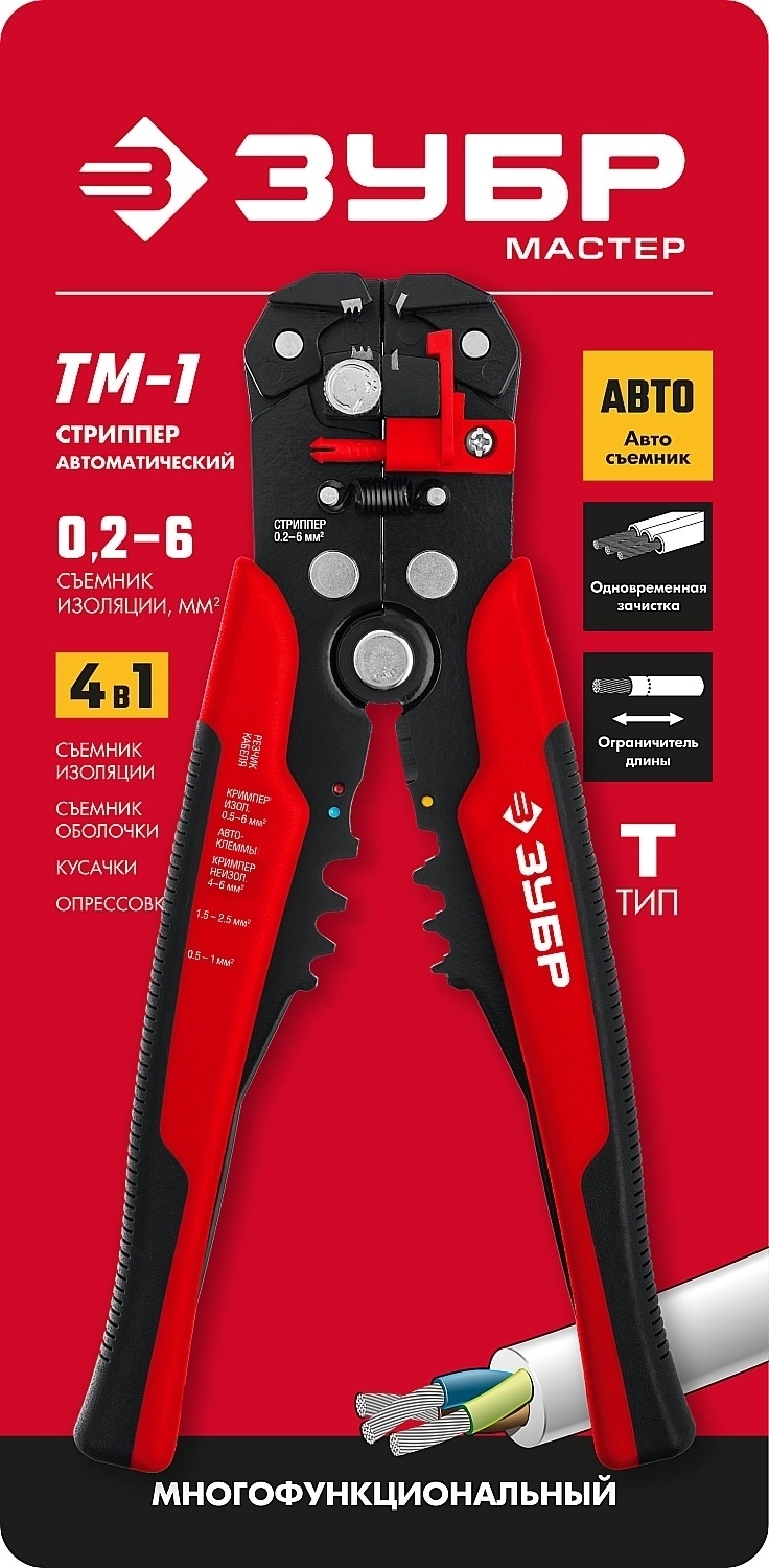 Автоматический стриппер с винтом микронастройки ЗУБР ТМ-1, 0.2 - 6 мм2