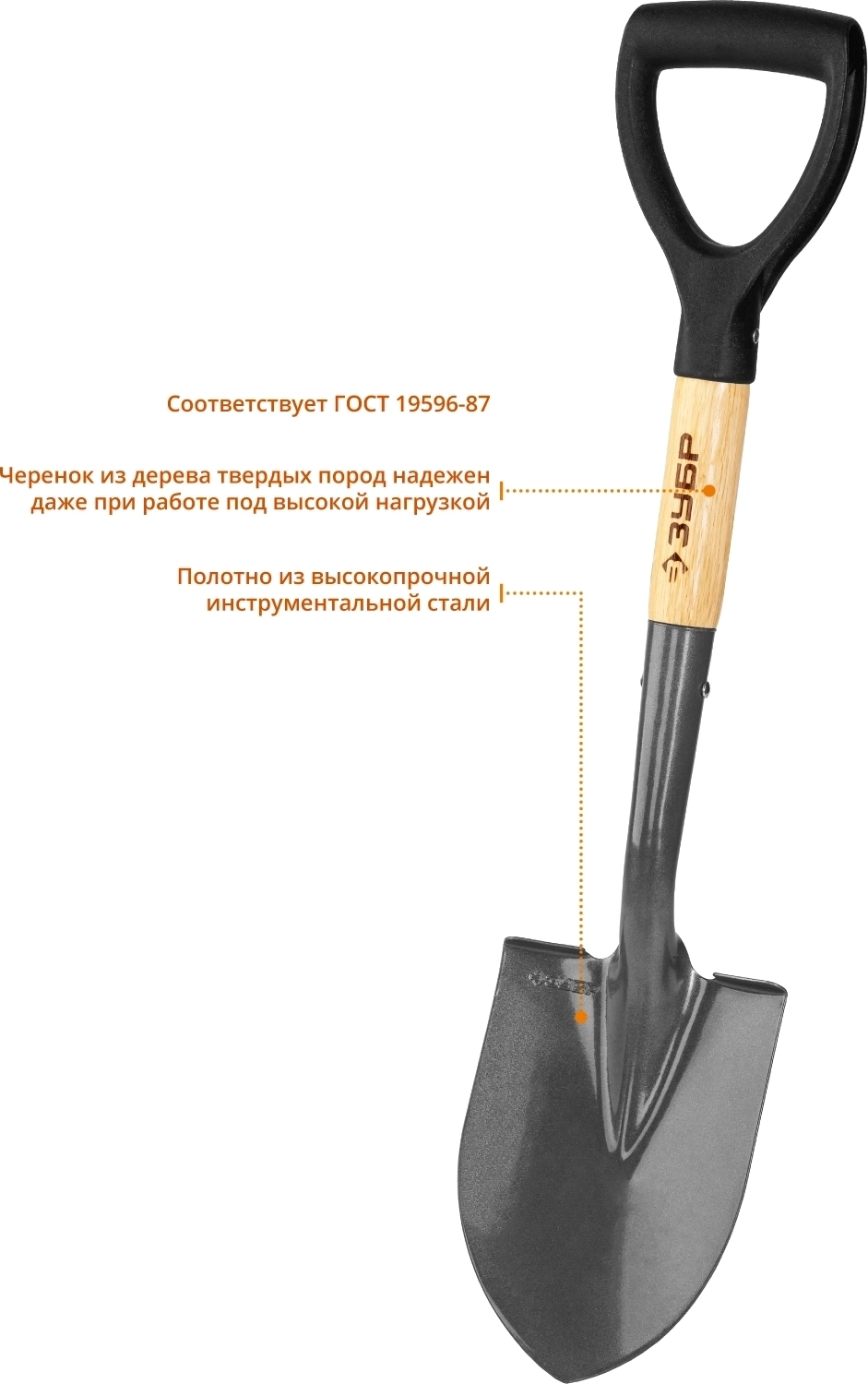 Автомобильная лопата ЗУБР Фаворит-А 210х145х680мм полотно 1.6мм закалено дерев. лакир. черенок высш. сорт с рукояткой