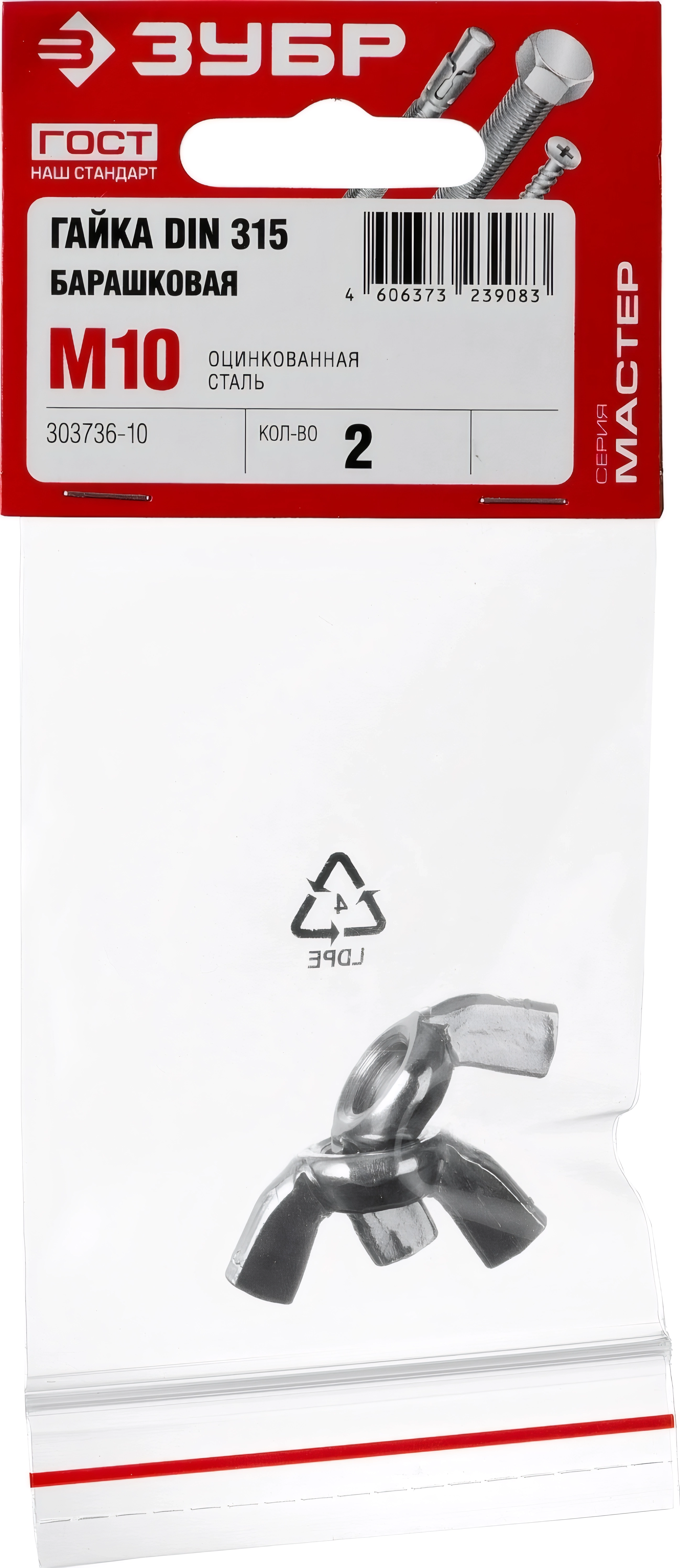 Барашковая гайка ЗУБР DIN 315, M10, цинк, 2 шт