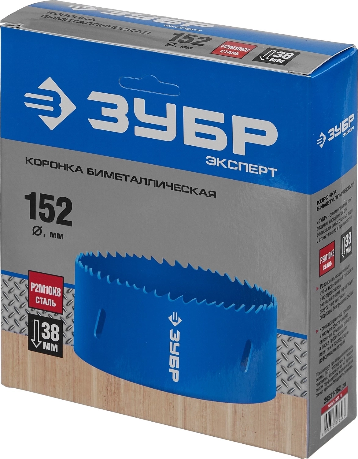 Биметаллическая коронка ЗУБР 152 мм, сталь Р6М5