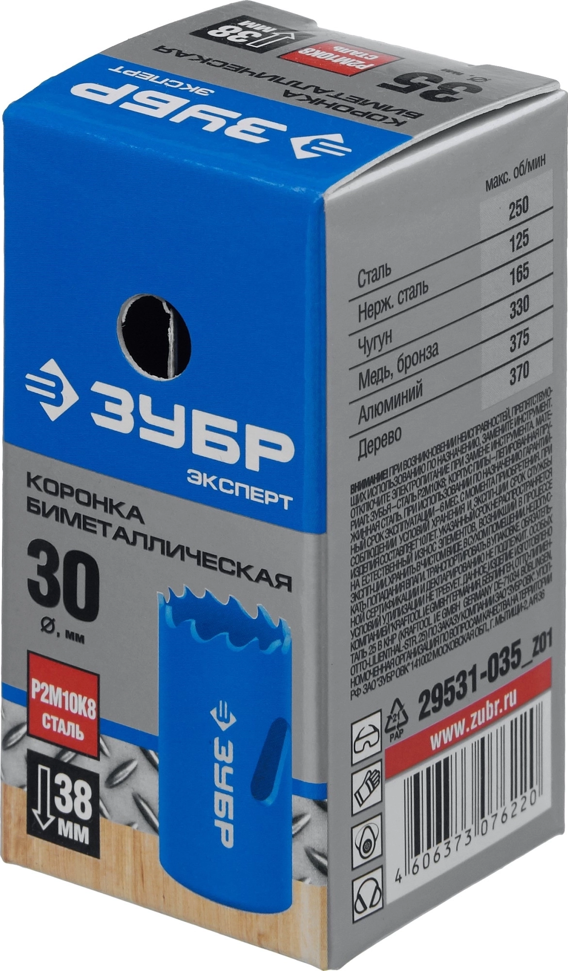 Биметаллическая коронка ЗУБР 30 мм, сталь Р6М5