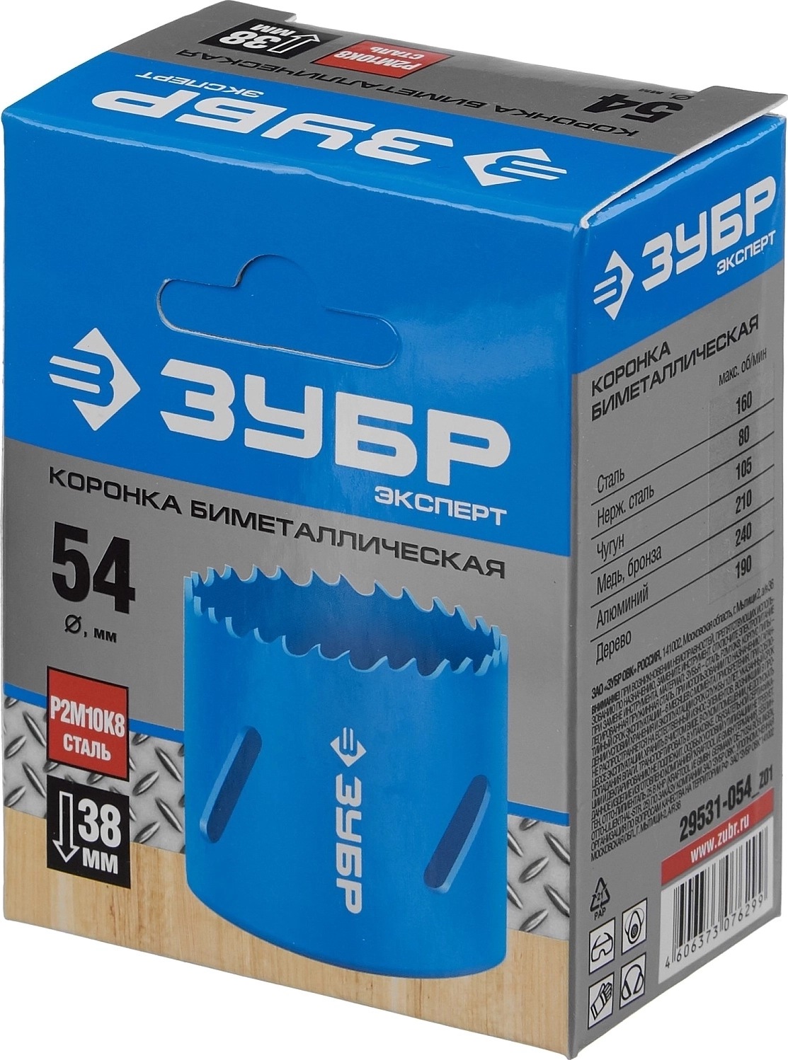 Биметаллическая коронка ЗУБР 54 мм, сталь Р6М5
